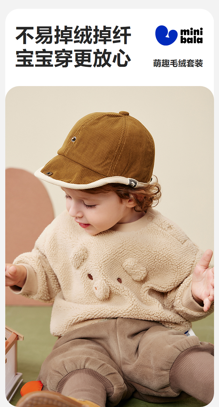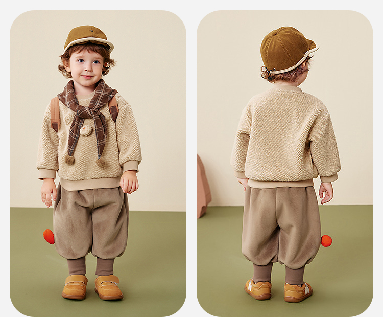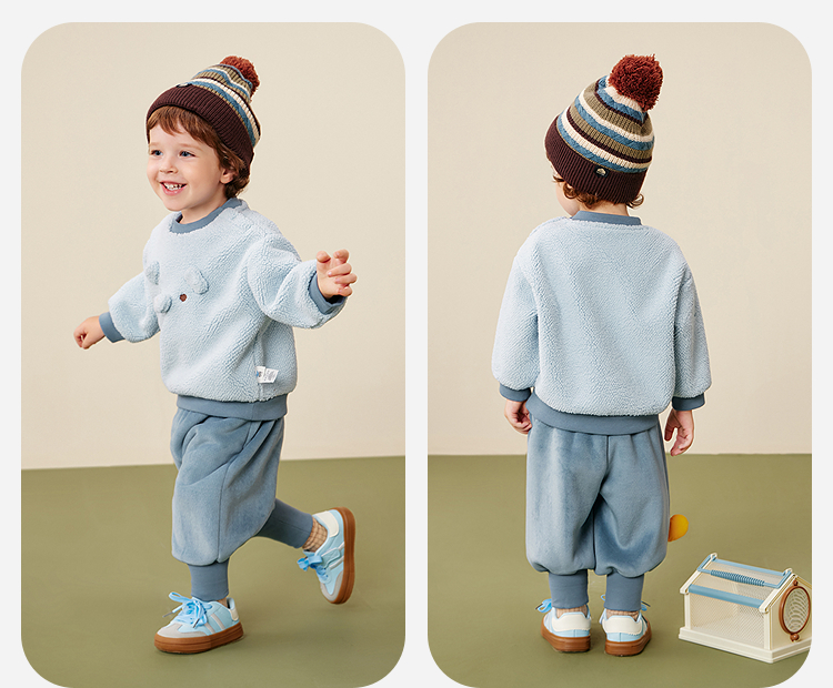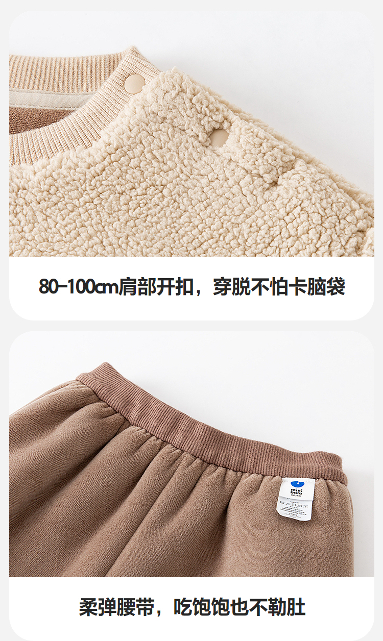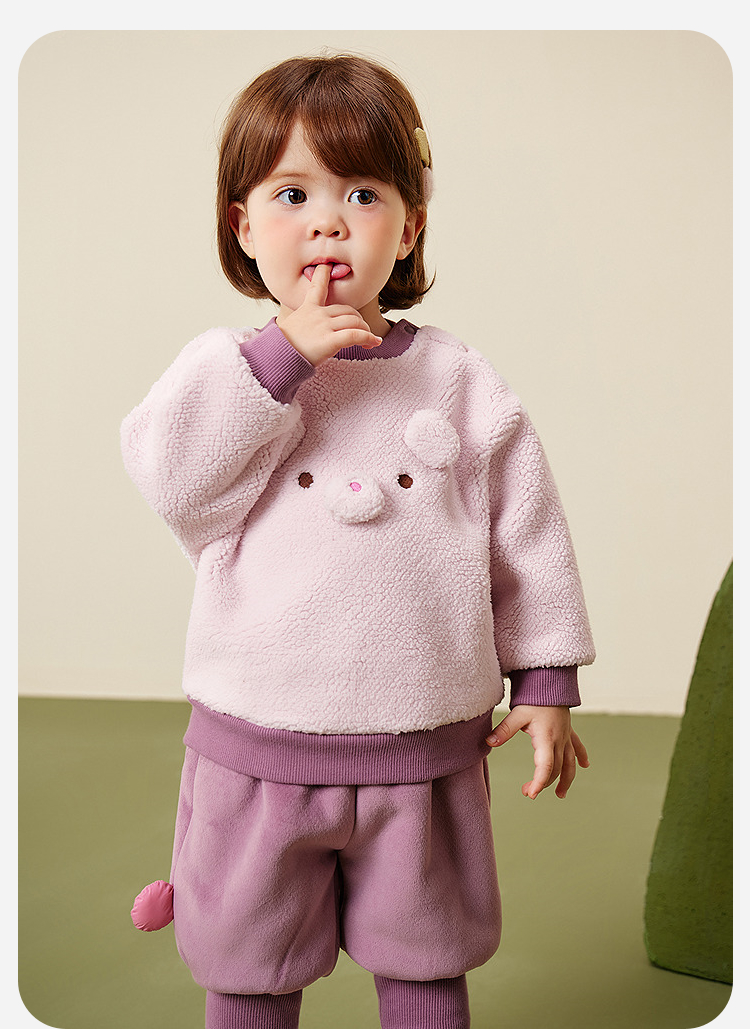 迷你巴拉男女童宝宝毛绒套装宽松保暖长袖长裤两件套冬新款