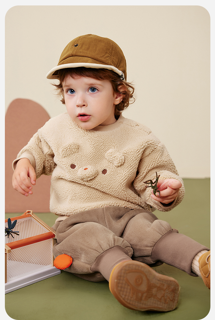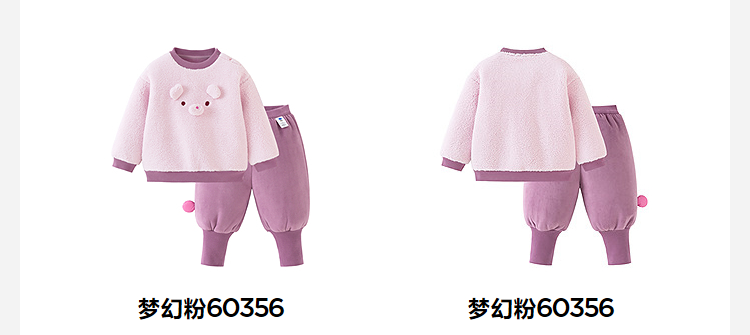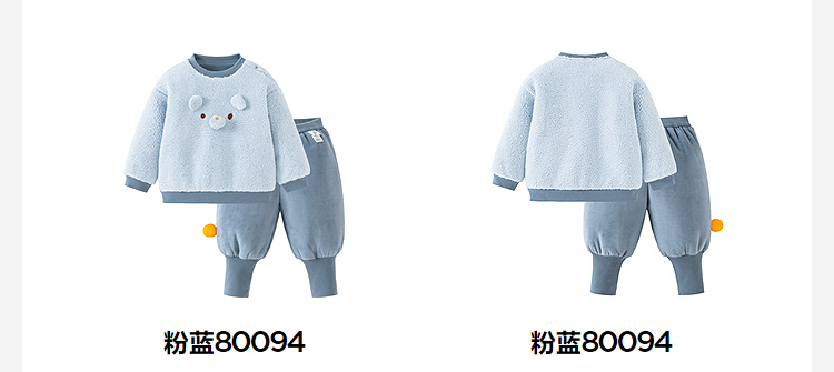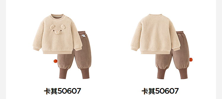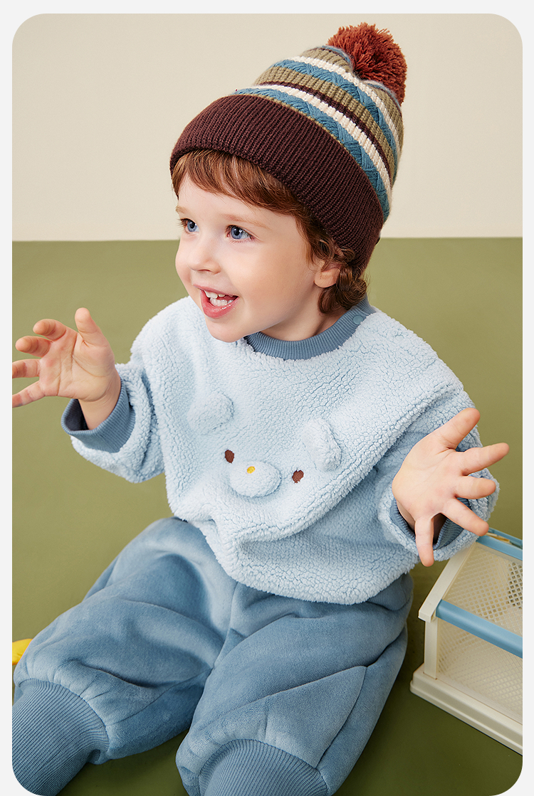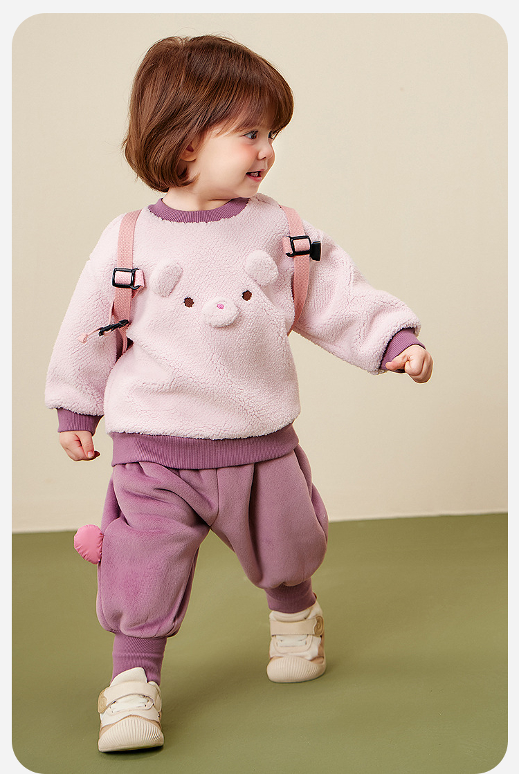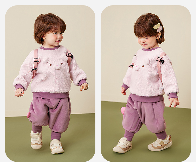 迷你巴拉男女童宝宝毛绒套装宽松保暖长袖长裤两件套冬新款