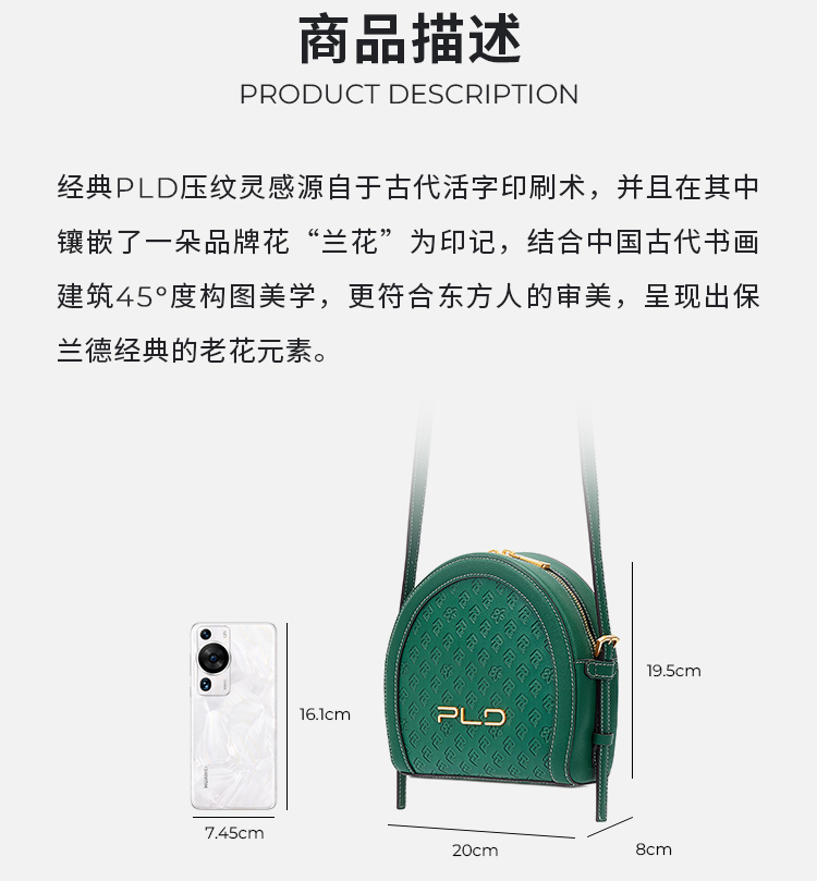 保兰德PLD东方雅奢新款PLD系列马蹄铁单肩斜挎包头层牛皮通勤必备女包