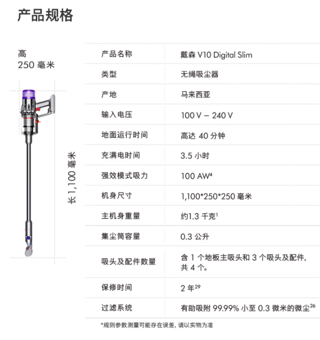 戴森(DYSON)V10 Digital Slim 无线轻量吸尘器 除螨 【2023款】