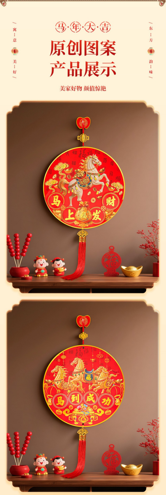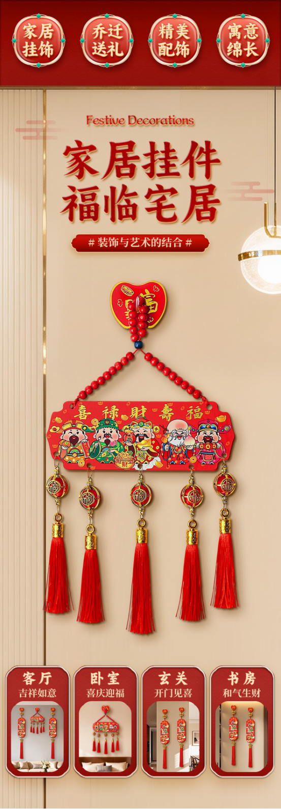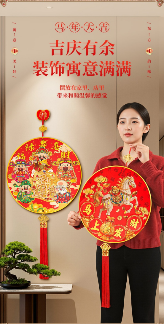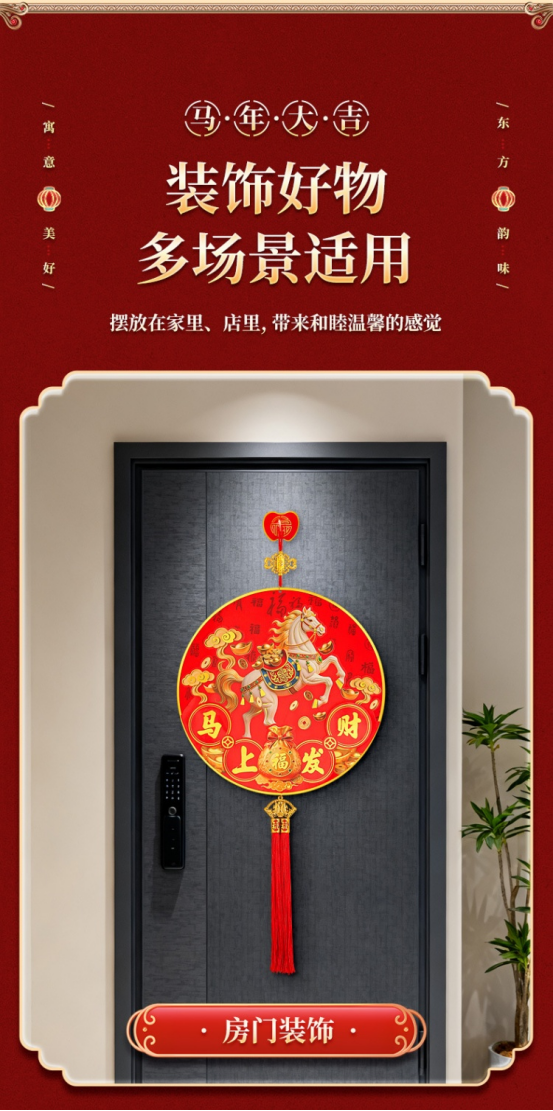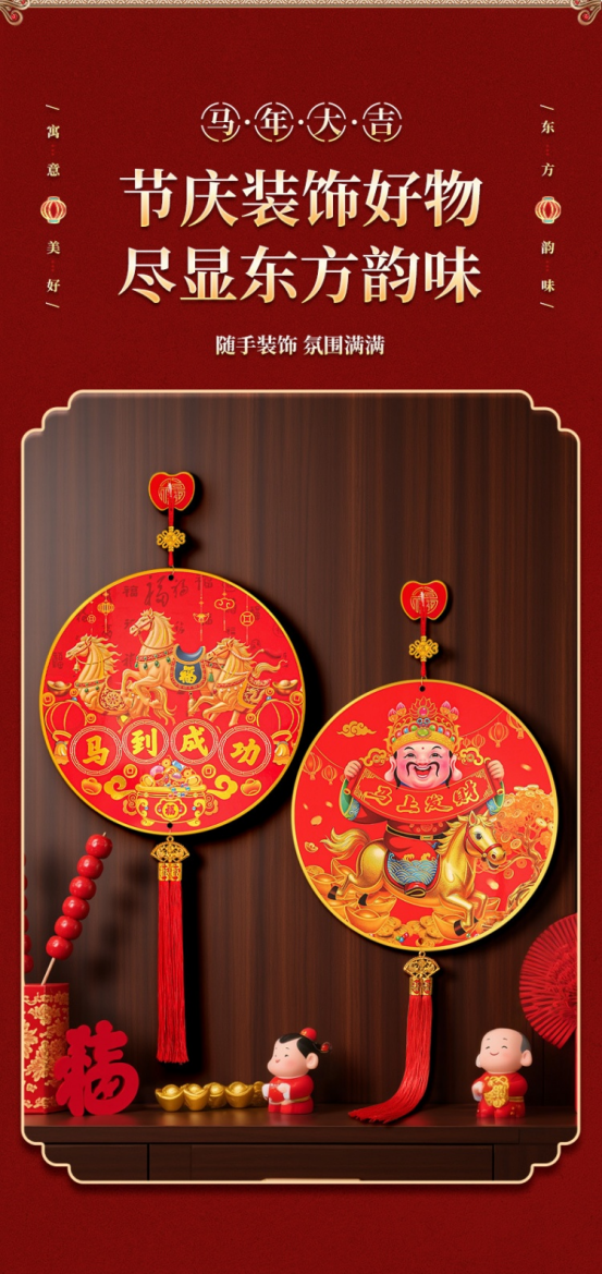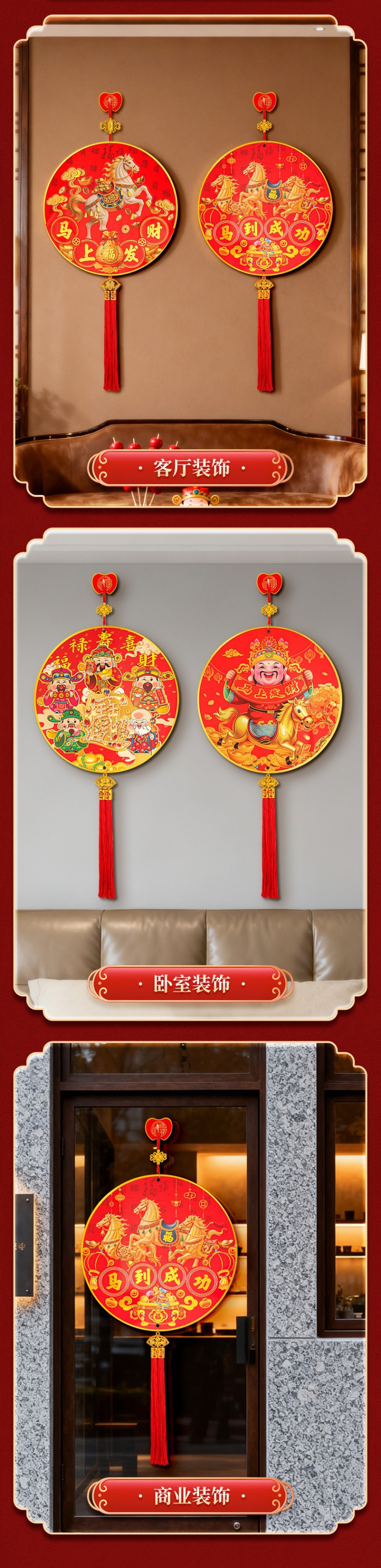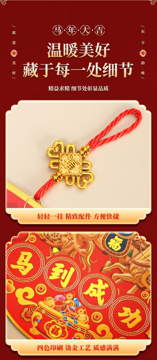 姐妹们!2026马年春节的仪式感我提前安排上啦🥳🥳 这次入的这款福字门挂真的让我一眼爱上! 过年就该红红火火,这款挂饰质感超棒,挂在门上瞬间年味就来了✨✨, 五福图案设计寓意超好,马上有福马上发财的好彩头必须拥有呀!