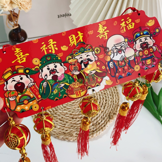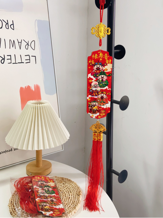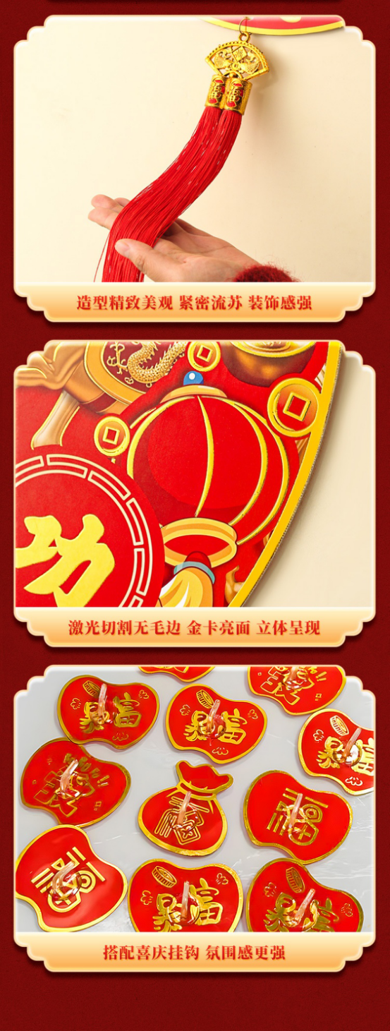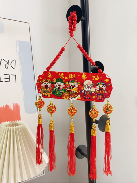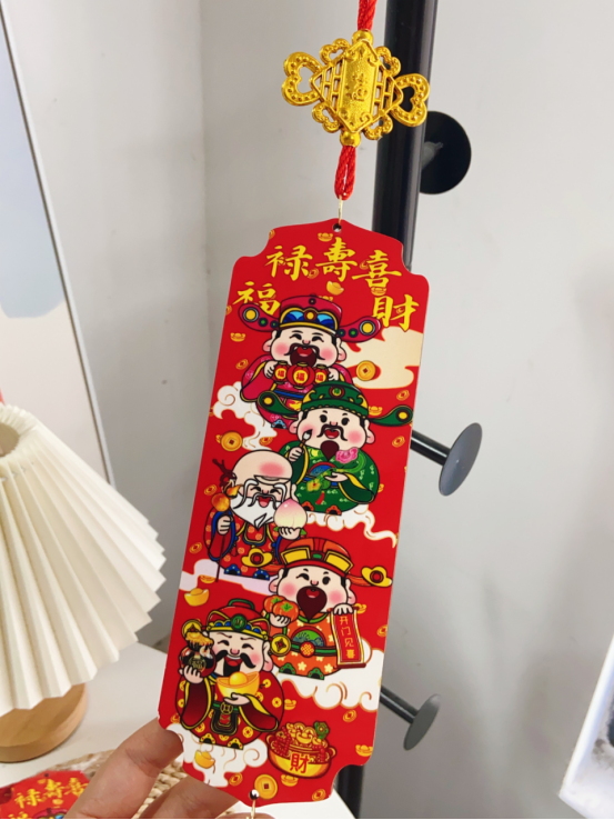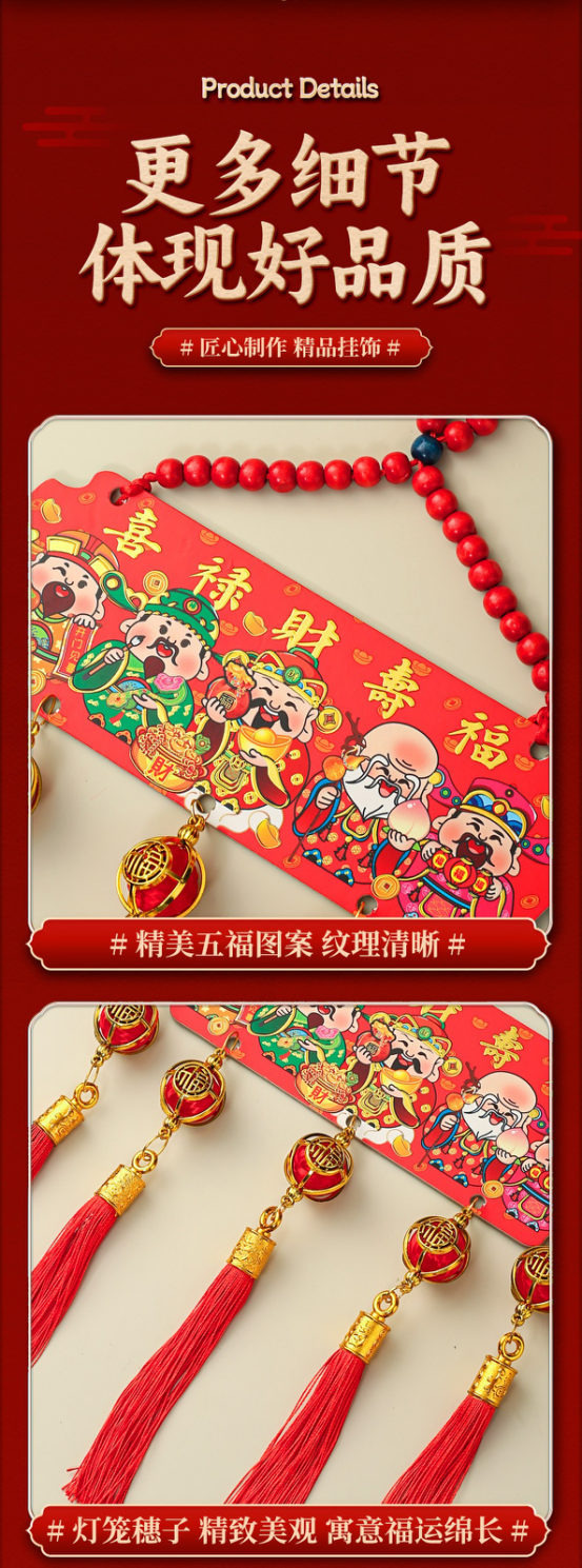 ❗️ ❗️年味暴击💥【五路财神挂件】2026年的好运从开门见福开始🧧比起普通福字贴,这款立体挂件质感真的赢很大! ✅加厚材质挺括不软塌,亮眼不俗气 ✅流苏长度刚好不拖沓~细节控狂喜 ✅贴心送挂钩,3秒搞定年味布置🎉 过年要的就是这份热气腾腾的仪式感!闭眼冲这个福气!
