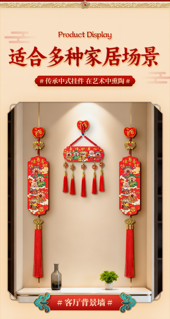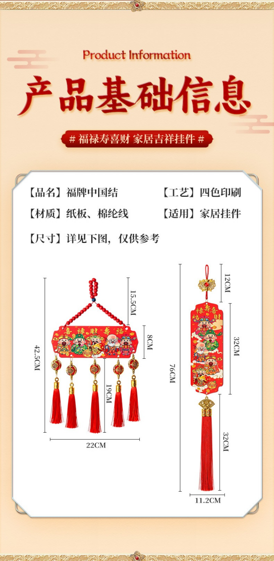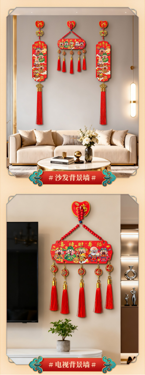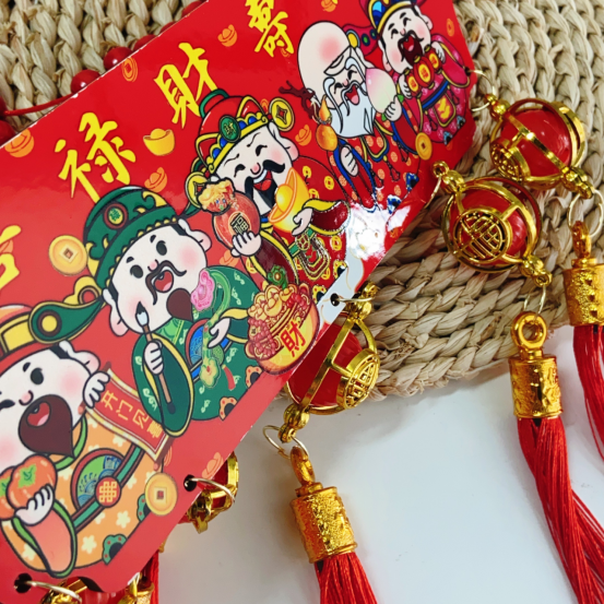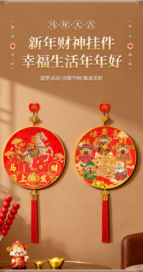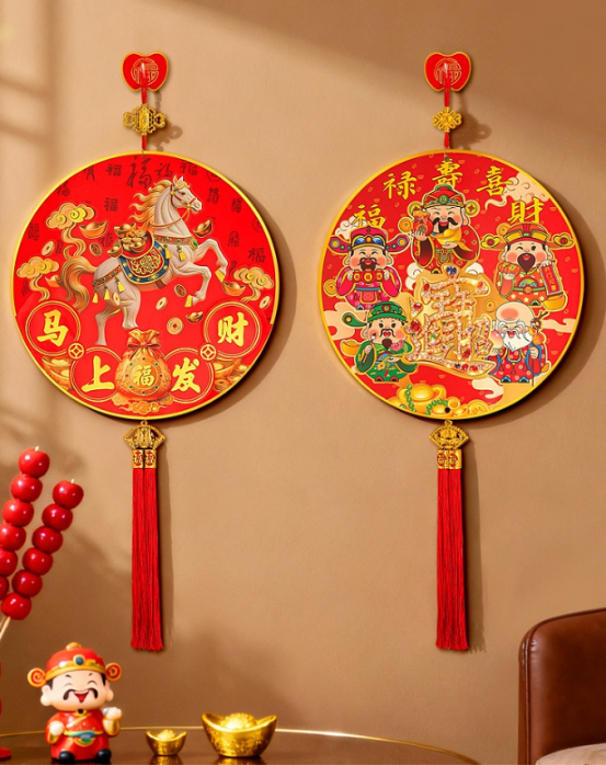 ❗️ ❗️年味暴击💥【五路财神挂件】2026年的好运从开门见福开始🧧比起普通福字贴,这款立体挂件质感真的赢很大! ✅加厚材质挺括不软塌,亮眼不俗气 ✅流苏长度刚好不拖沓~细节控狂喜 ✅贴心送挂钩,3秒搞定年味布置🎉 过年要的就是这份热气腾腾的仪式感!闭眼冲这个福气!