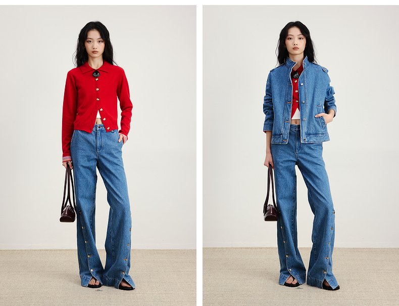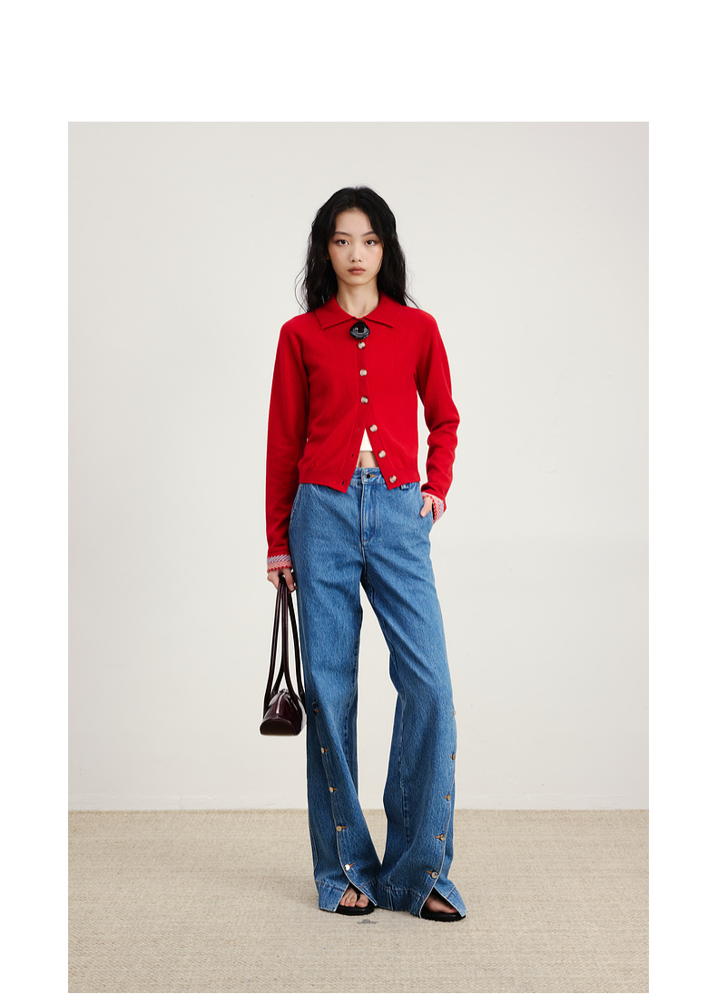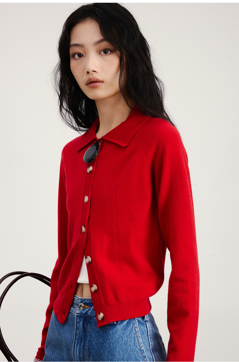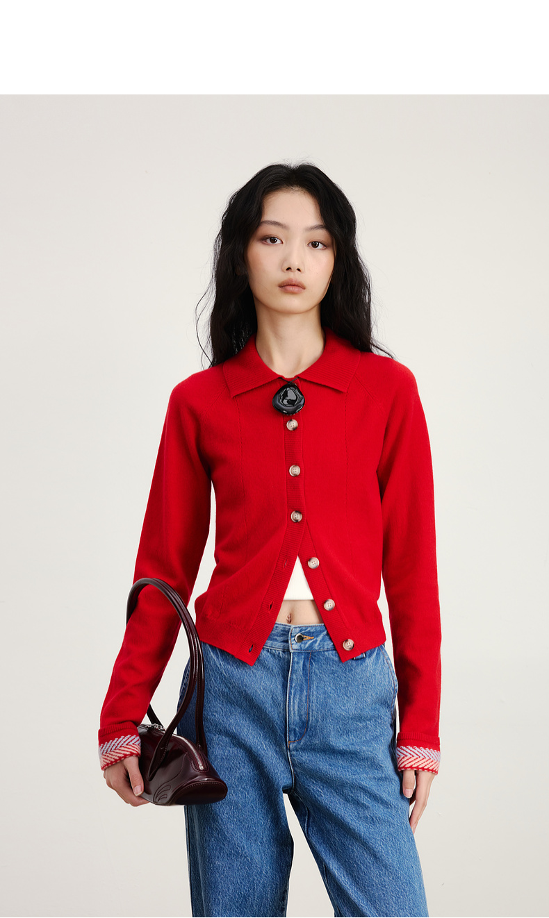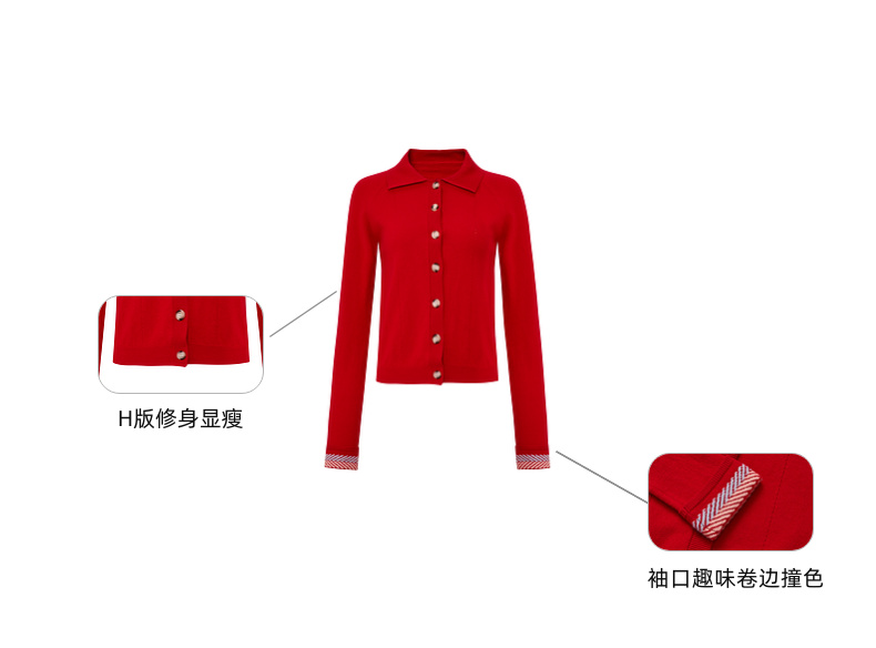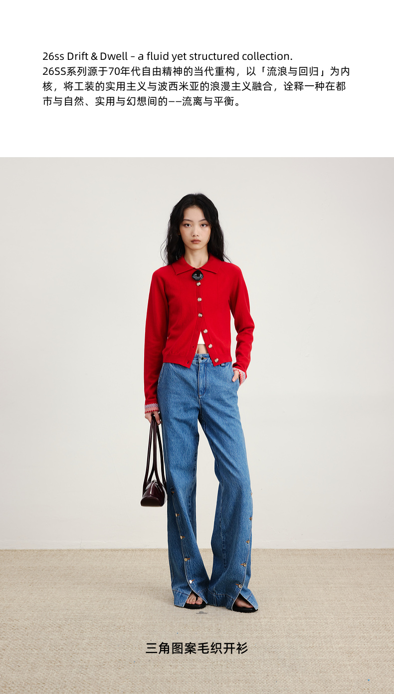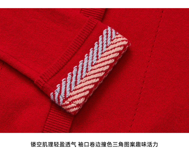 lost in echo2026早春新款时尚圣诞红三角图案修身保暖羊毛开衫女