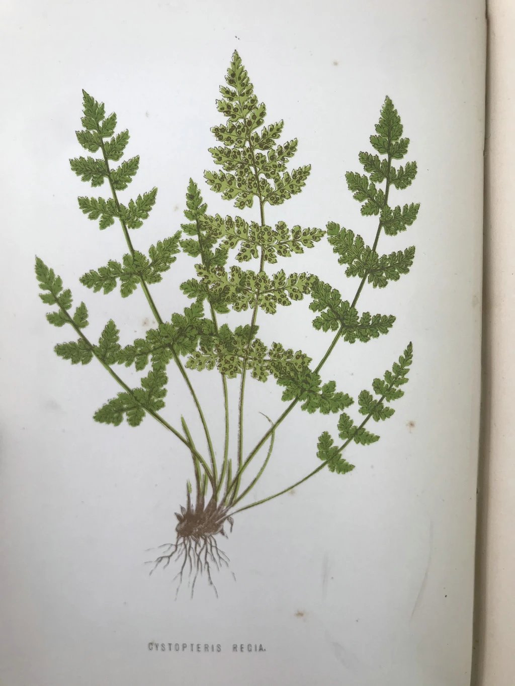 1881年 蕨类植物园艺指南 数十幅插图(含彩色) 漆布精装32开