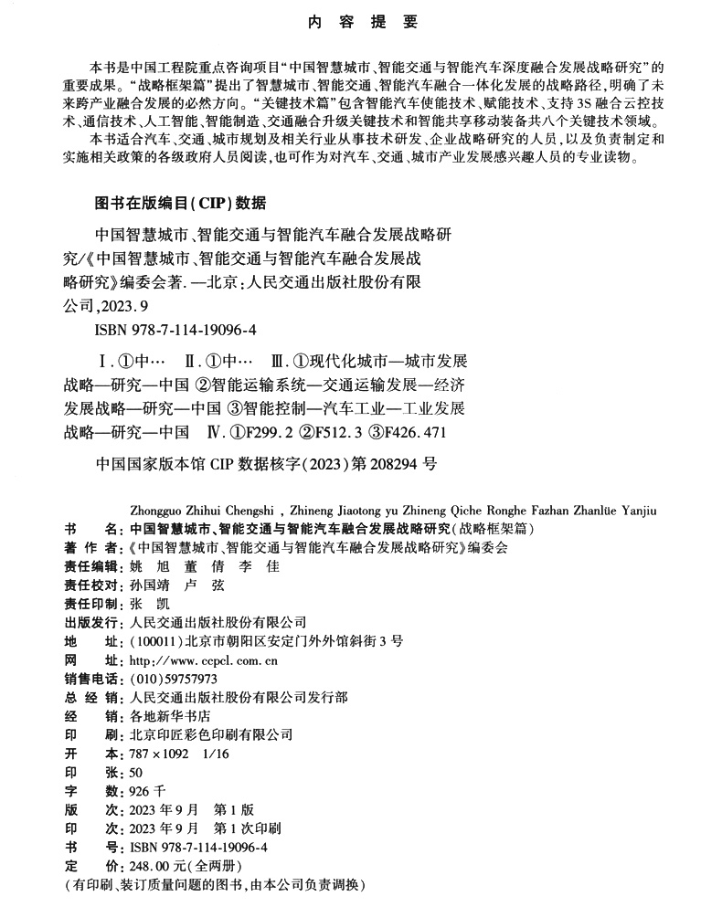 书名:中国智慧城市、智能交通与智能汽车融合发展战略研究