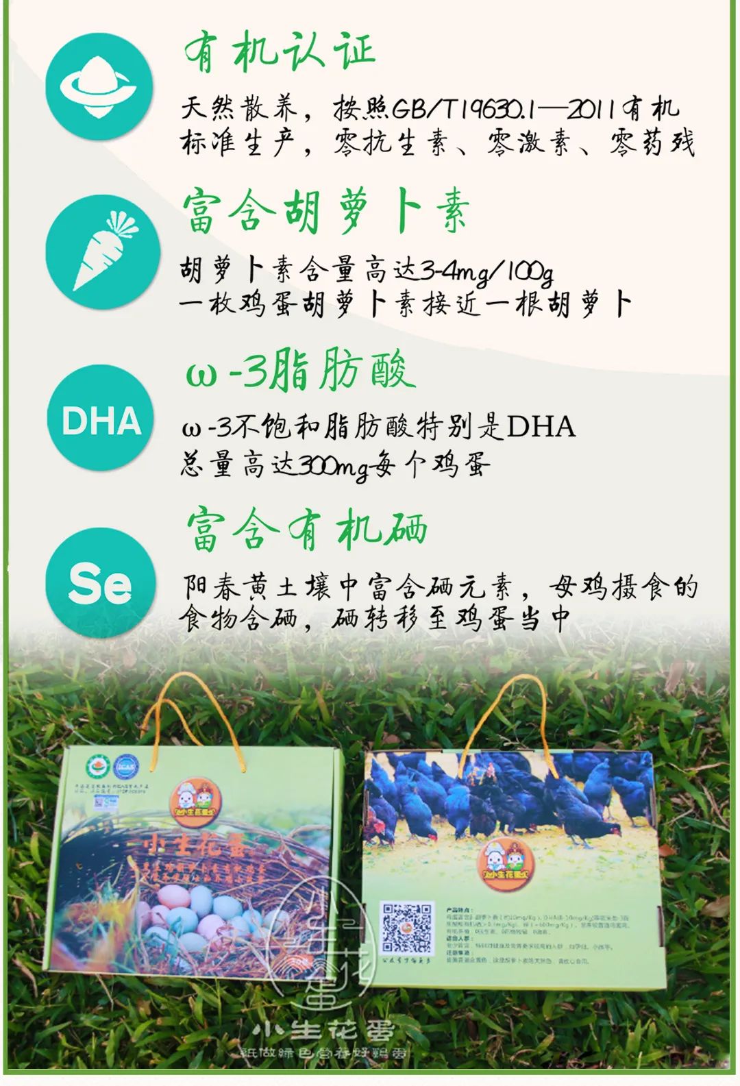 小生花蛋,自家食用的同时亦可用作送礼的佳品。我们多一份承诺,消费者多一份安心!