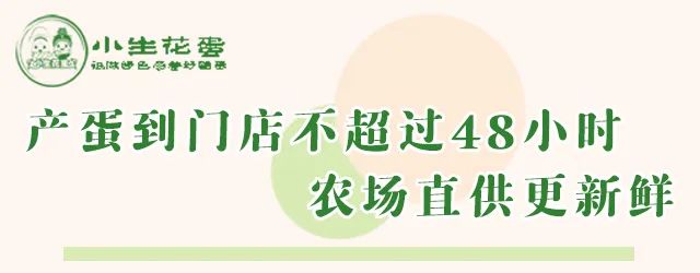 小生花蛋由阳春蛋窝直供,农场产蛋到门店不超过48小时,保证新鲜营养不流失。