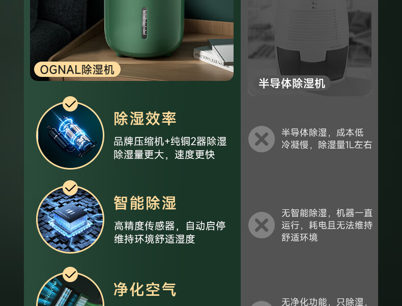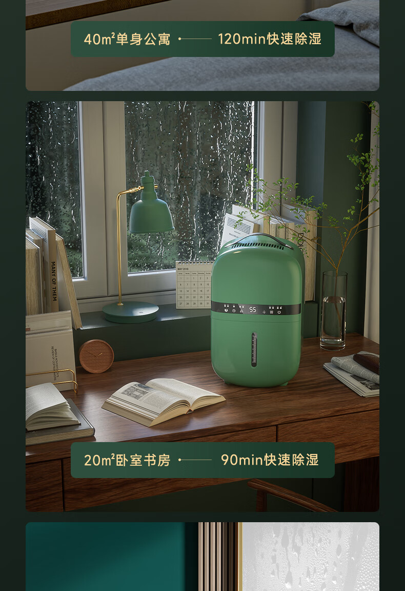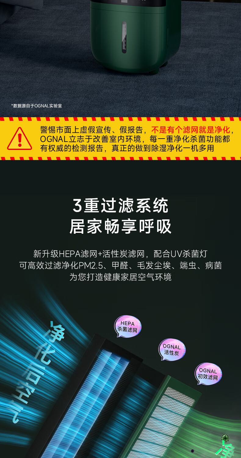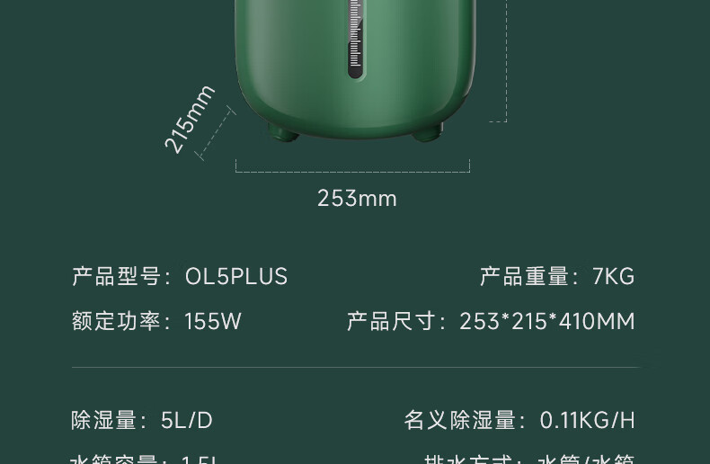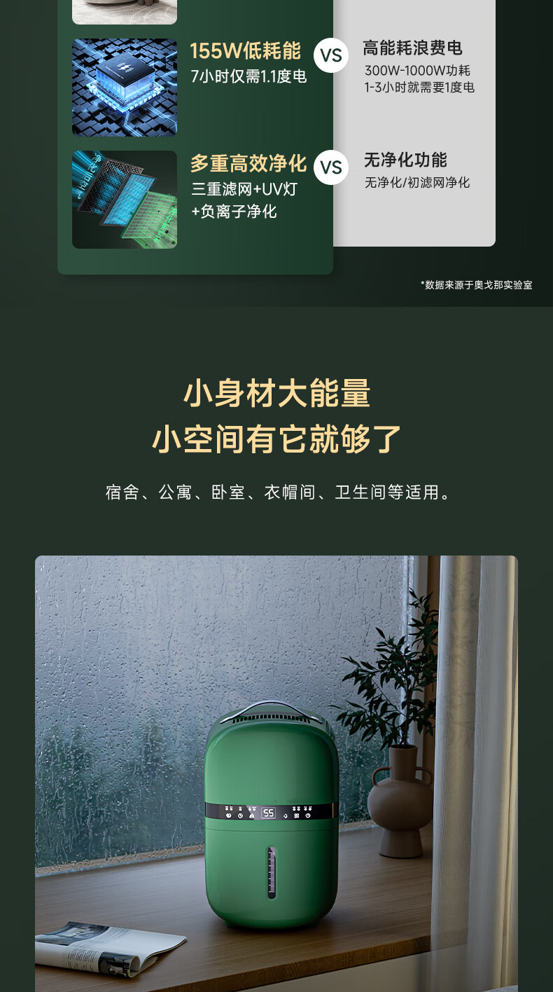 奥戈那英国家用除湿机/抽湿机 除湿量5升/天卧室轻音吸湿净化小型干衣除湿器干燥机 5L/天 20-40㎡ 【墨绿色智能除菌】