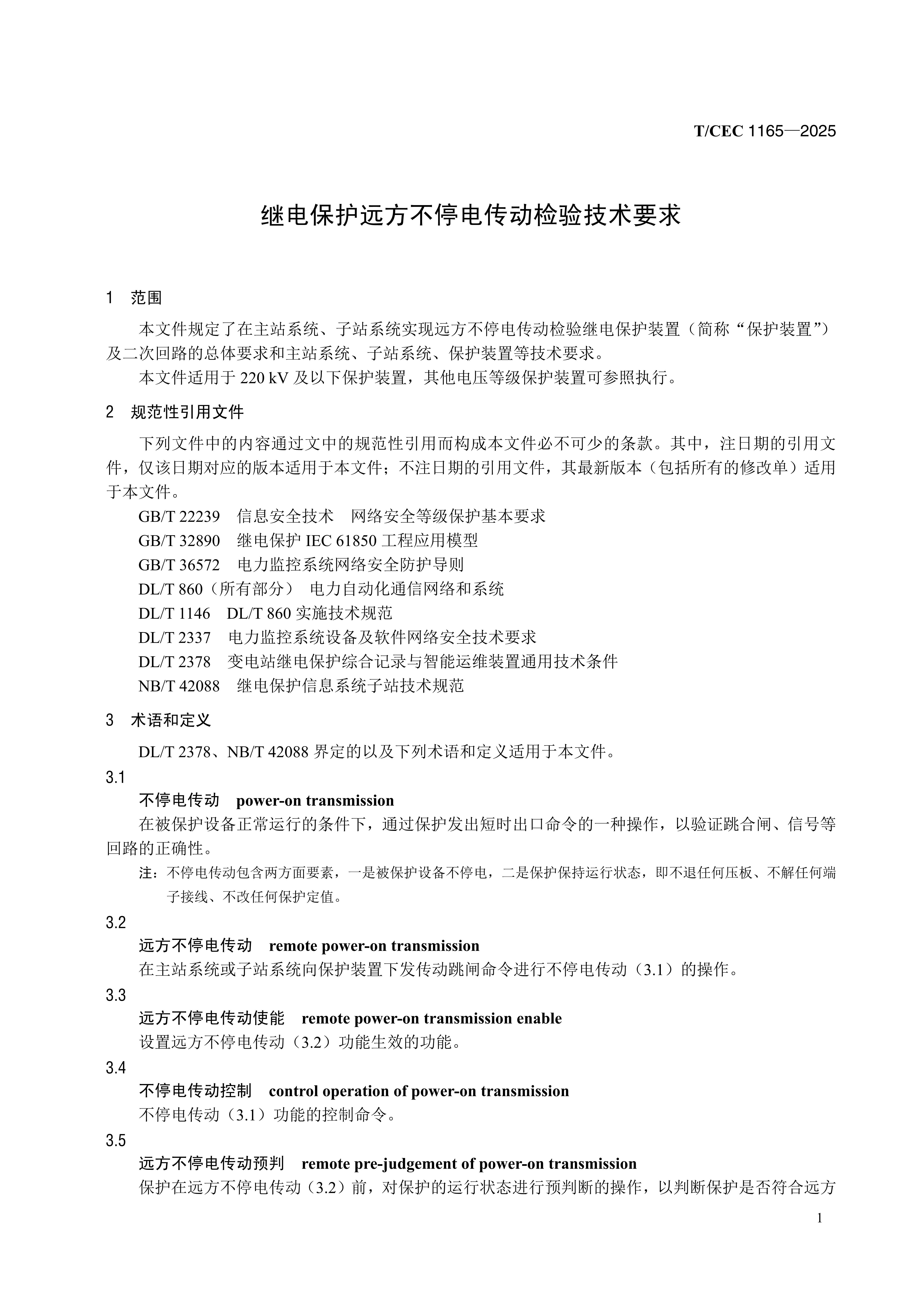 【按需印刷】T/CEC1165-2025继电保护远方不停电传动检验技术要求