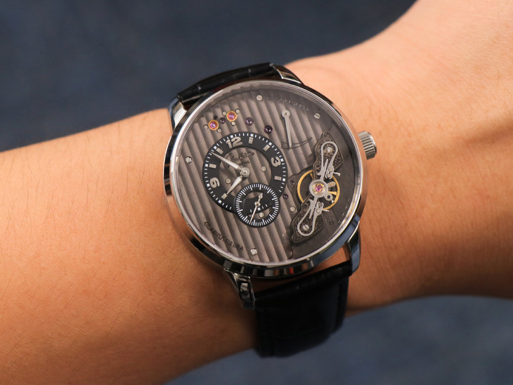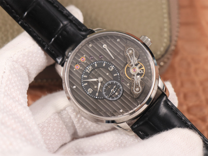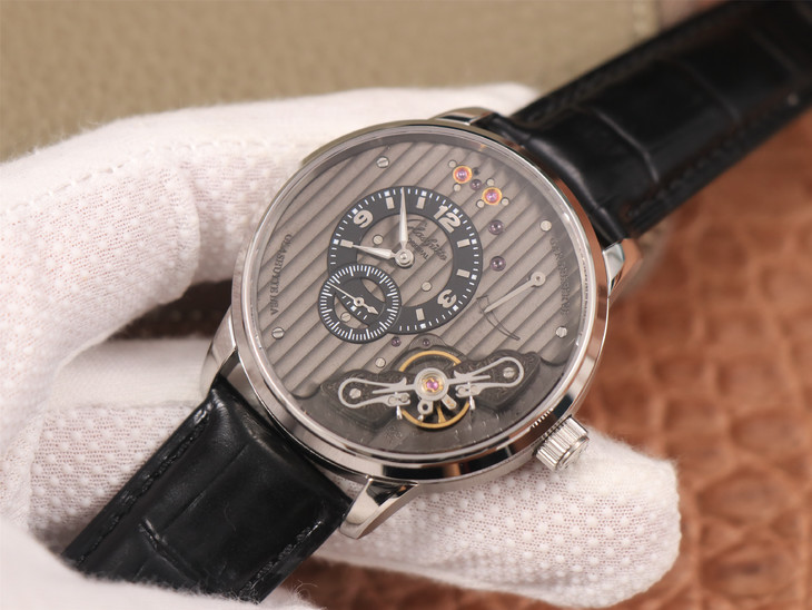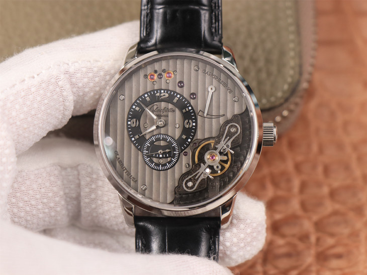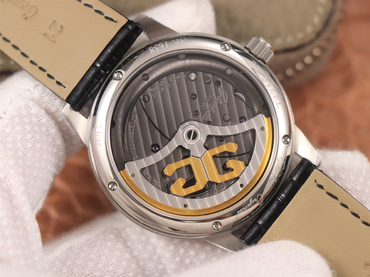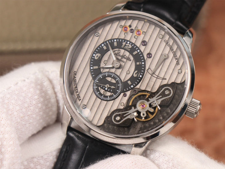 TZ格la苏di原创偏心系列1-66款PanoInverse XL腕表,2mm百搭尺寸,腕表采用3/4夹板设计,3/4 夹板的作用是承载走时轮系,男士腕表,自动机械机芯,皮表带,透底。