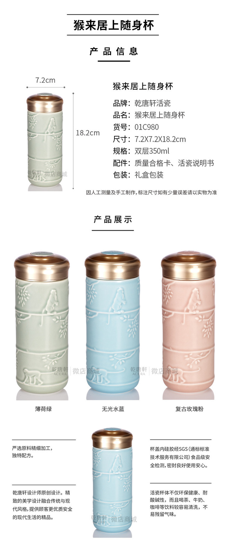 猴来居上随身杯 350ml 双层大容量