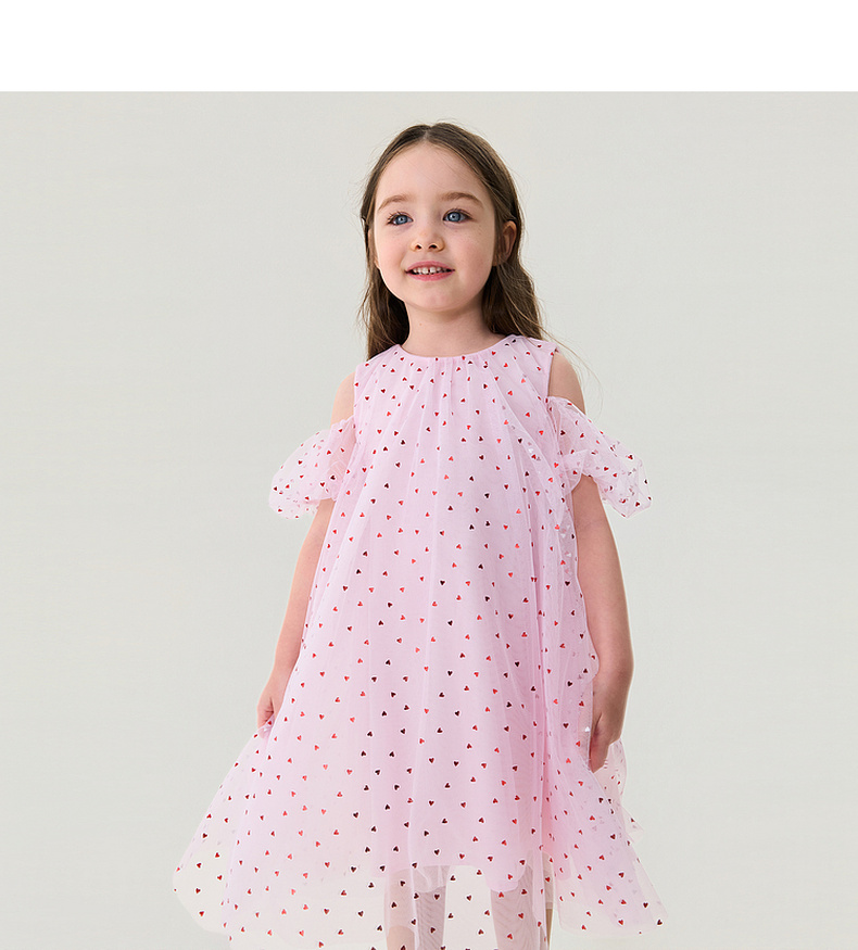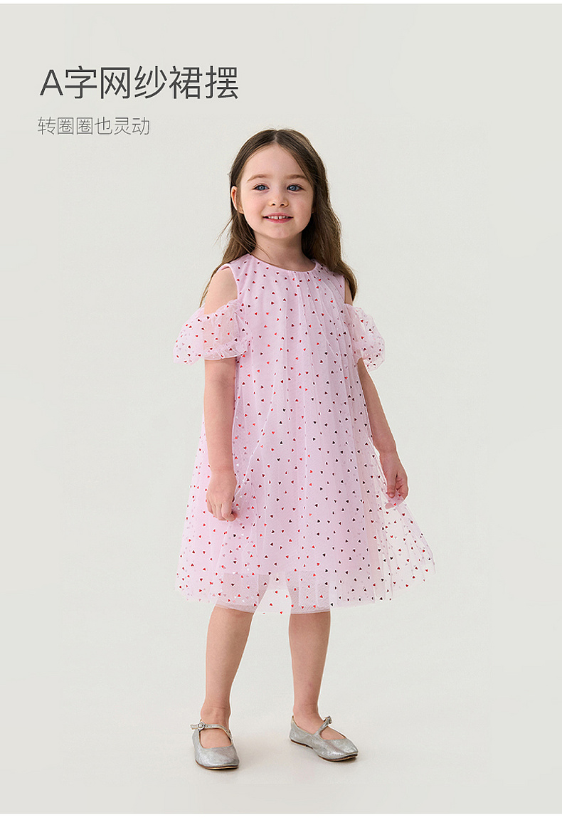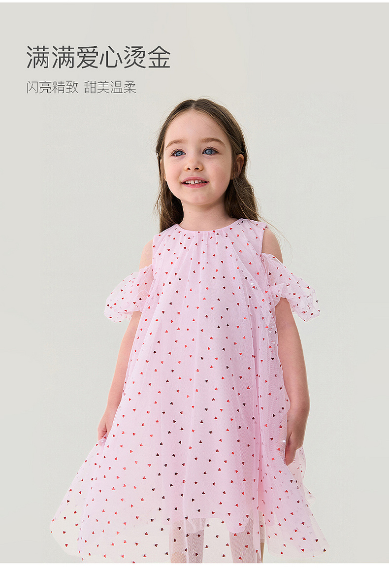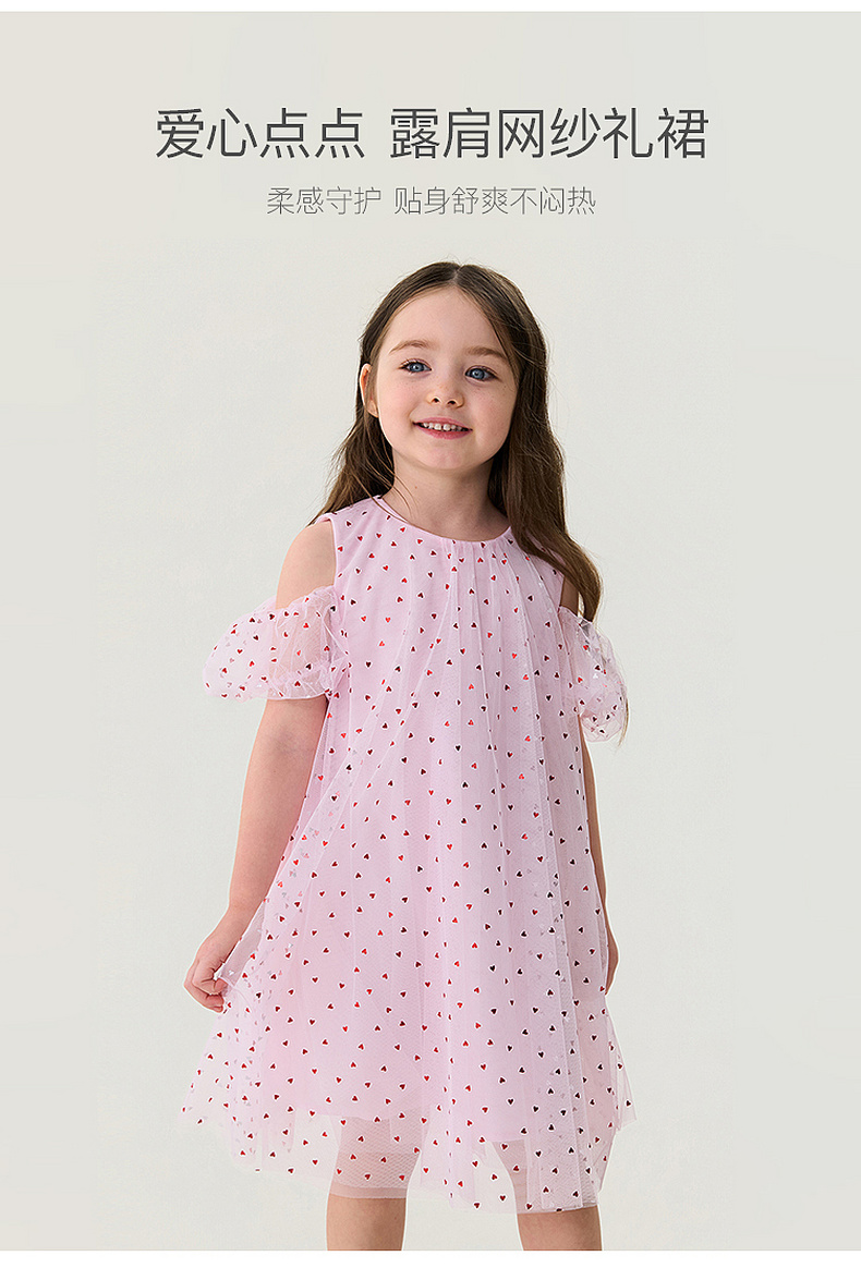 马克珍妮爱心点点女童露肩网纱礼裙2026年夏装新款560873