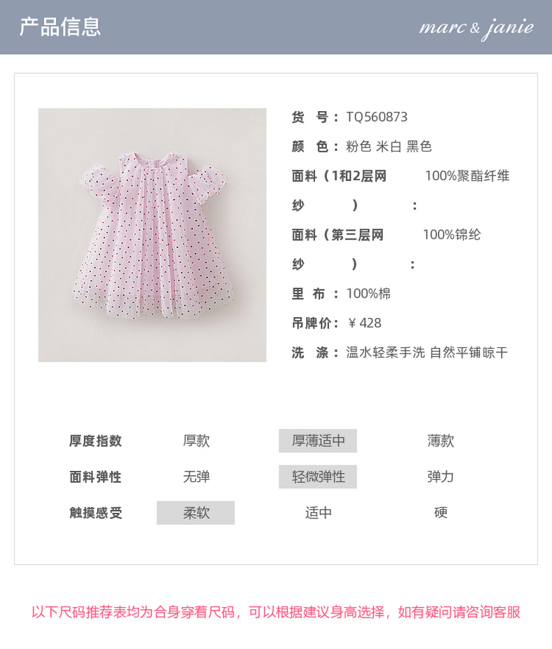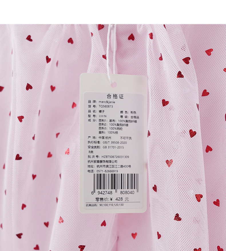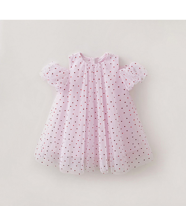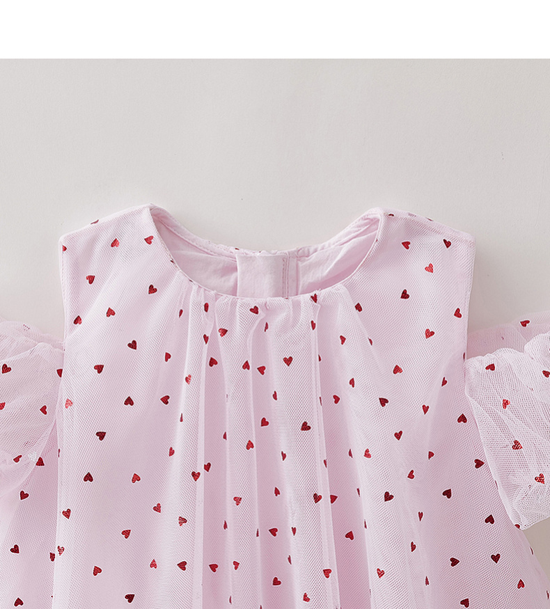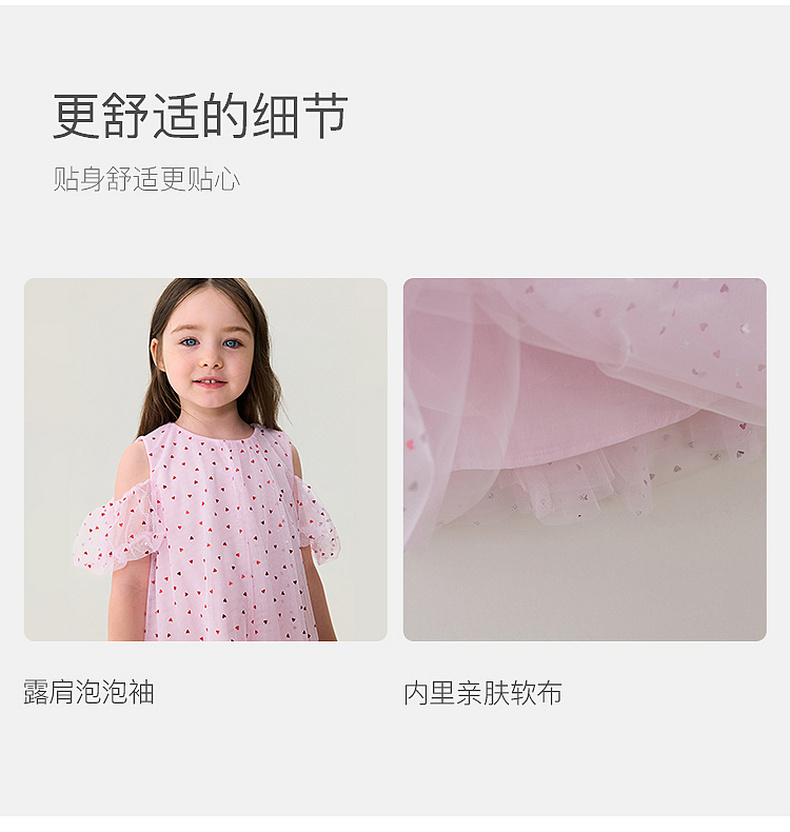 马克珍妮爱心点点女童露肩网纱礼裙2026年夏装新款560873