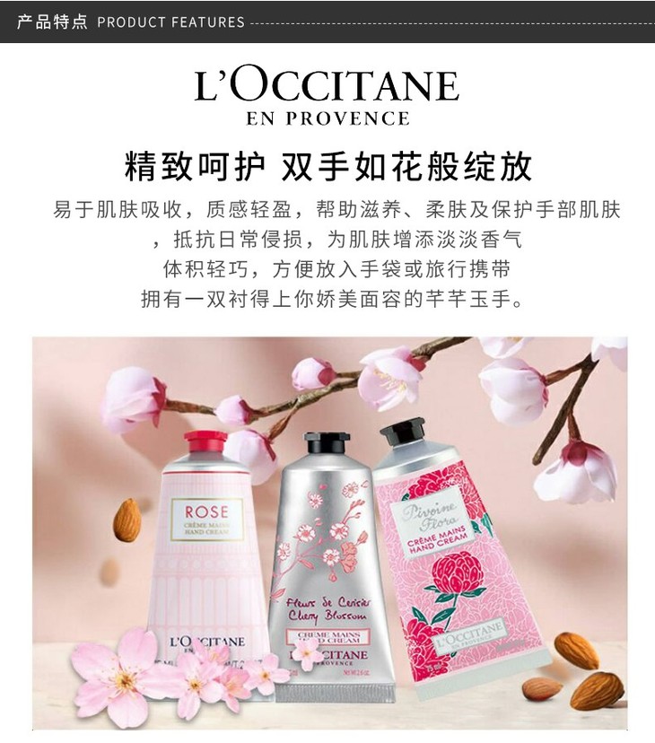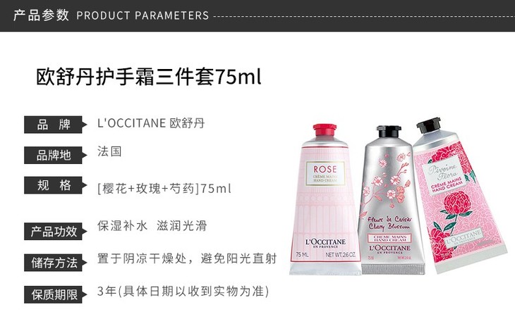 【中欧班列精选】1bf L'OCCITANE欧舒丹护手霜三件套(芍药+甜蜜樱花+玫瑰皇后各75ml)