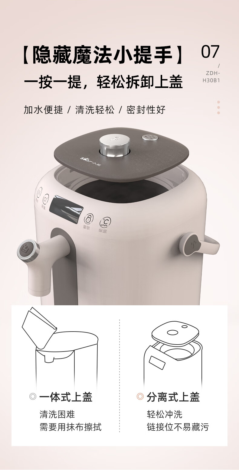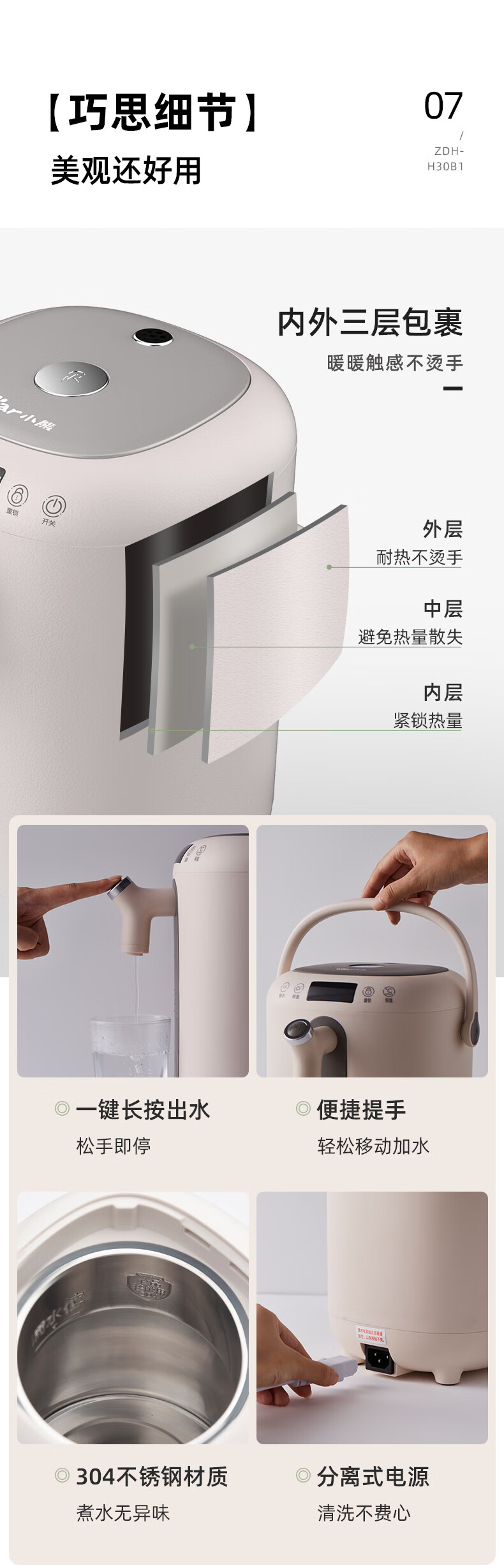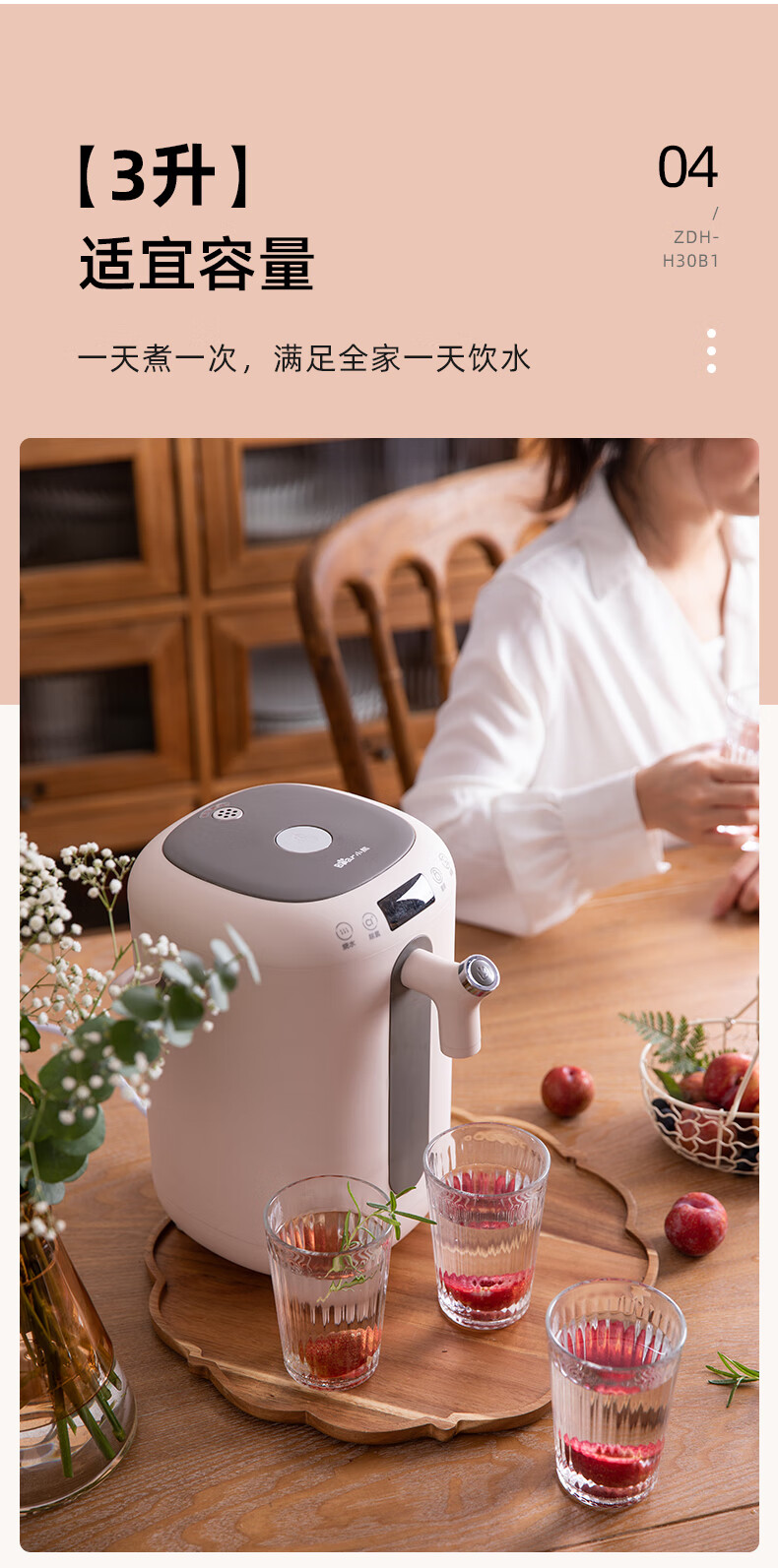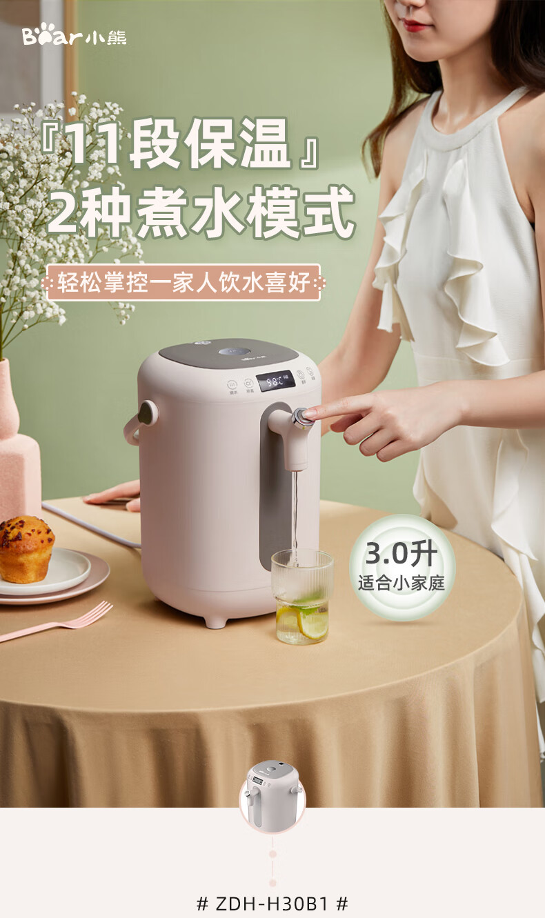 小熊(Bear) 电热水瓶热水壶烧水壶家用3L饮水机304不锈钢多段控温 ZDH-H30B1 3L大容量