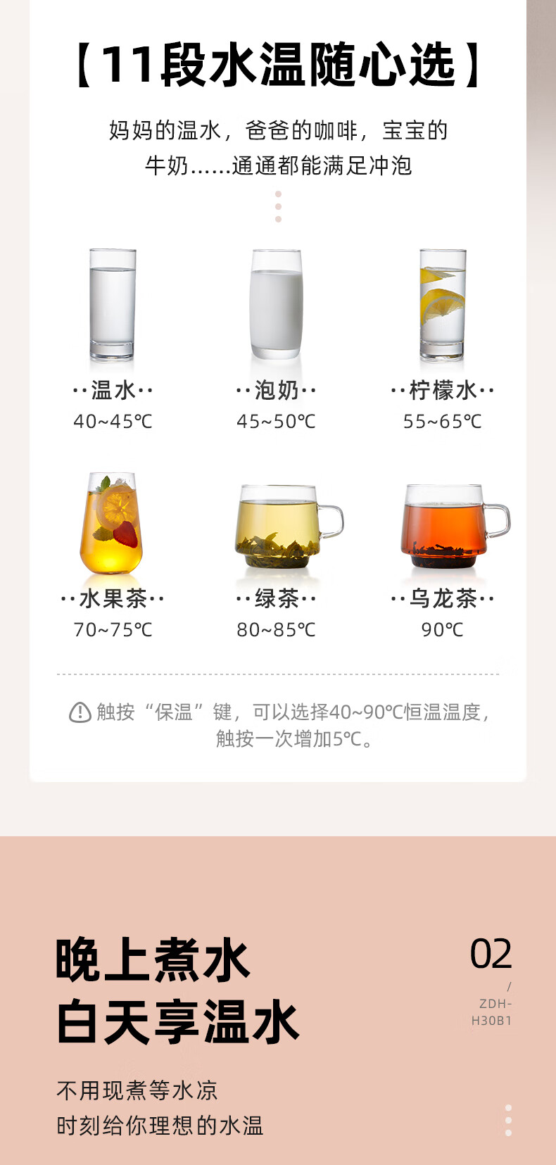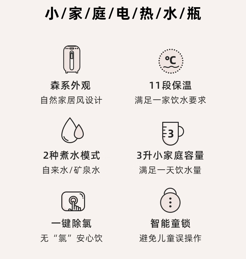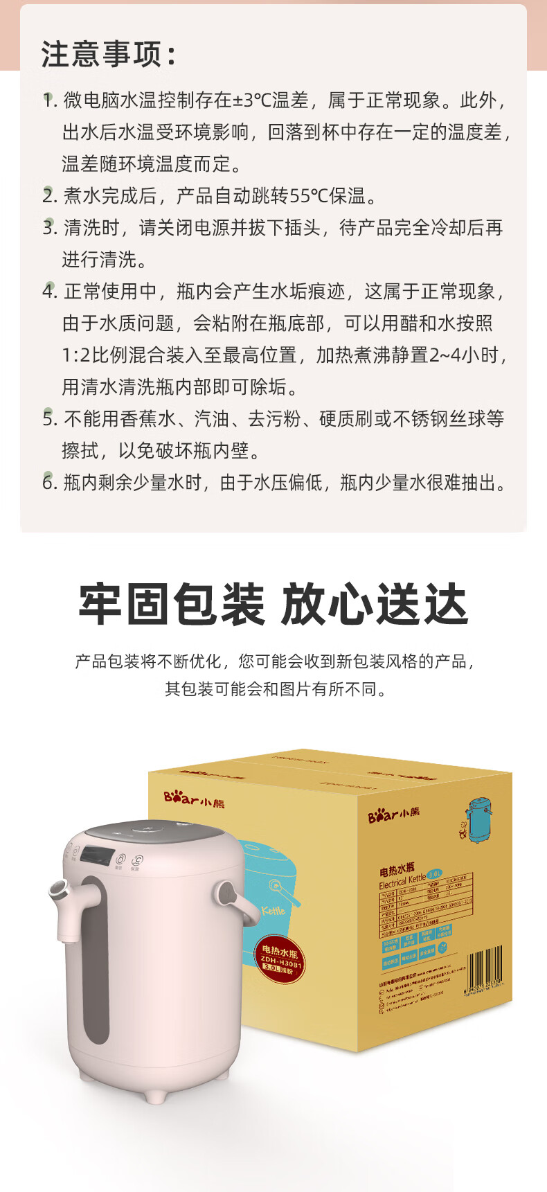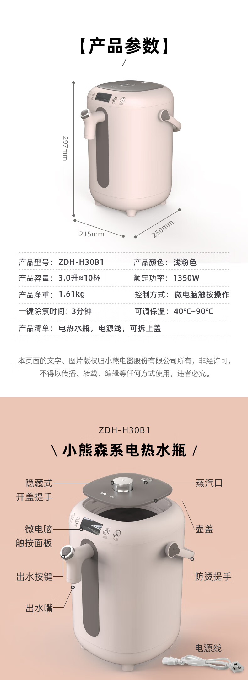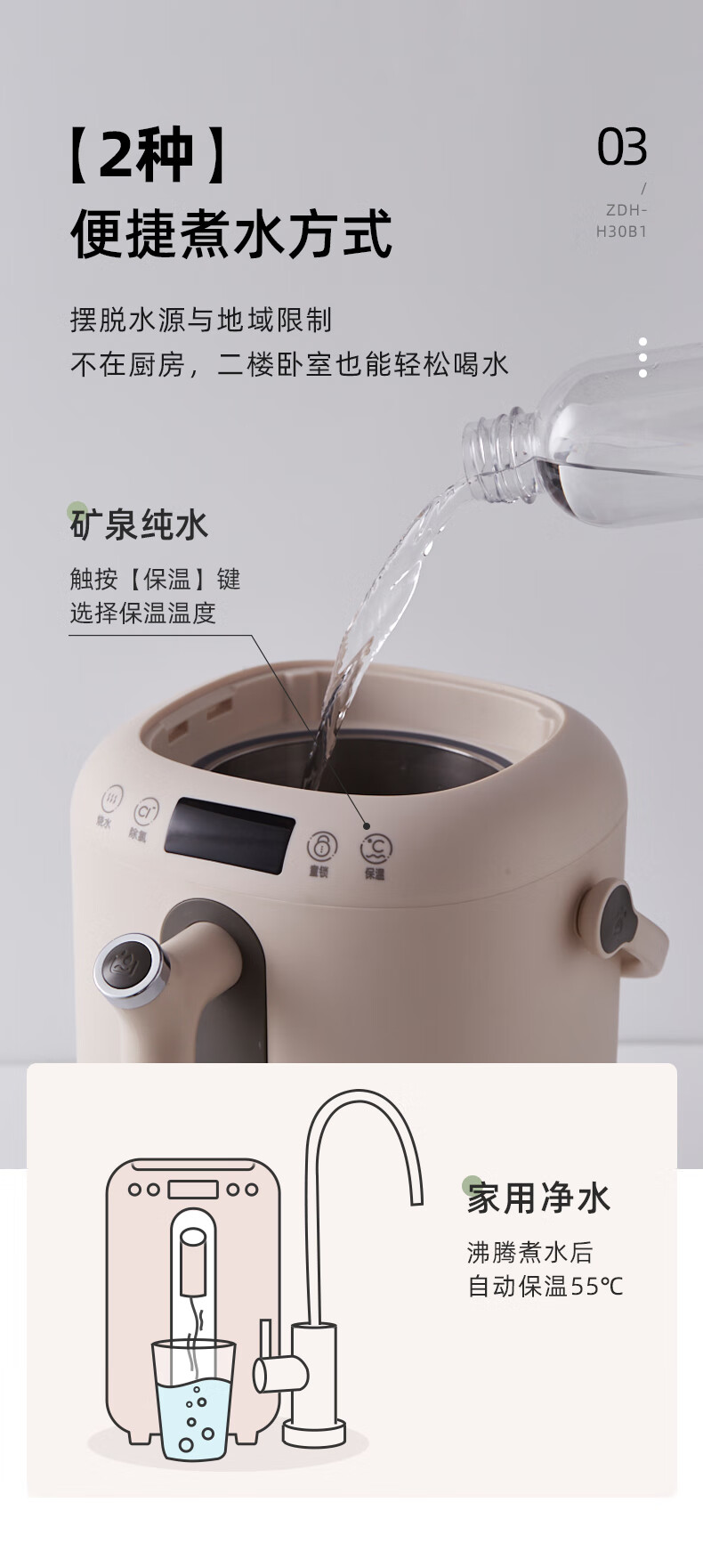 小熊(Bear) 电热水瓶热水壶烧水壶家用3L饮水机304不锈钢多段控温 ZDH-H30B1 3L大容量