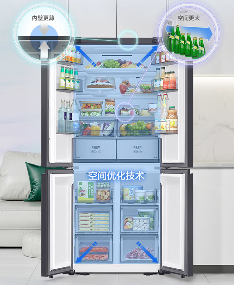 【年终燃购】三星(SAMSUNG)AI神冰箱8系进阶款 501L四开门十字门三循环超薄零嵌干湿分储柔光白RF50DG5131QQSC 赠天禧保温壶
