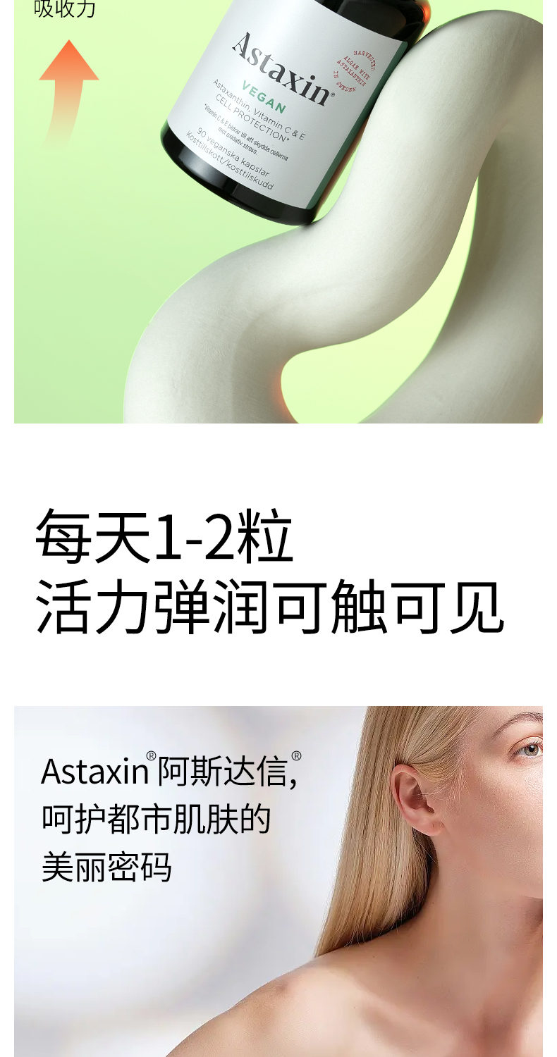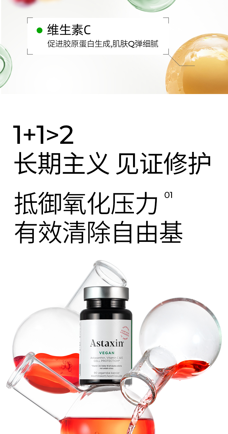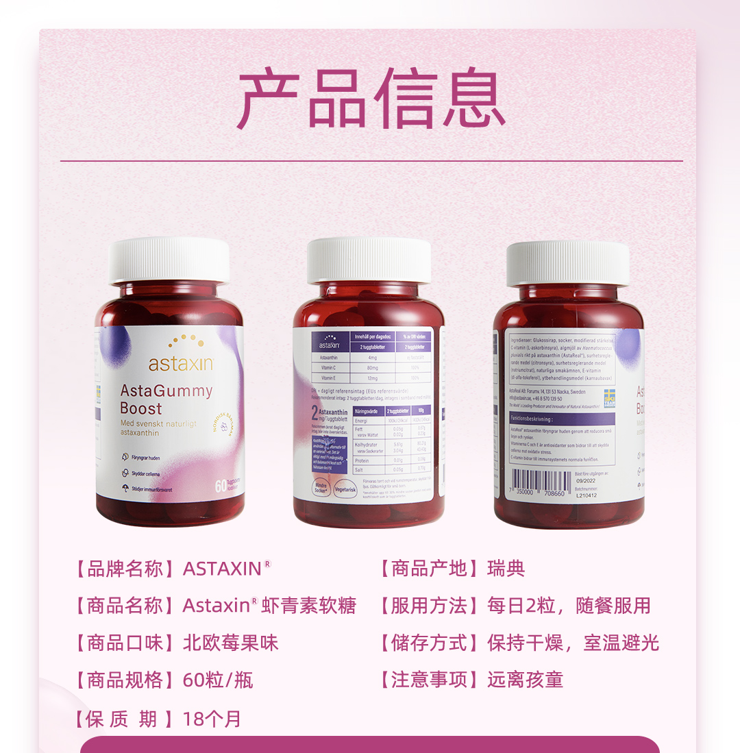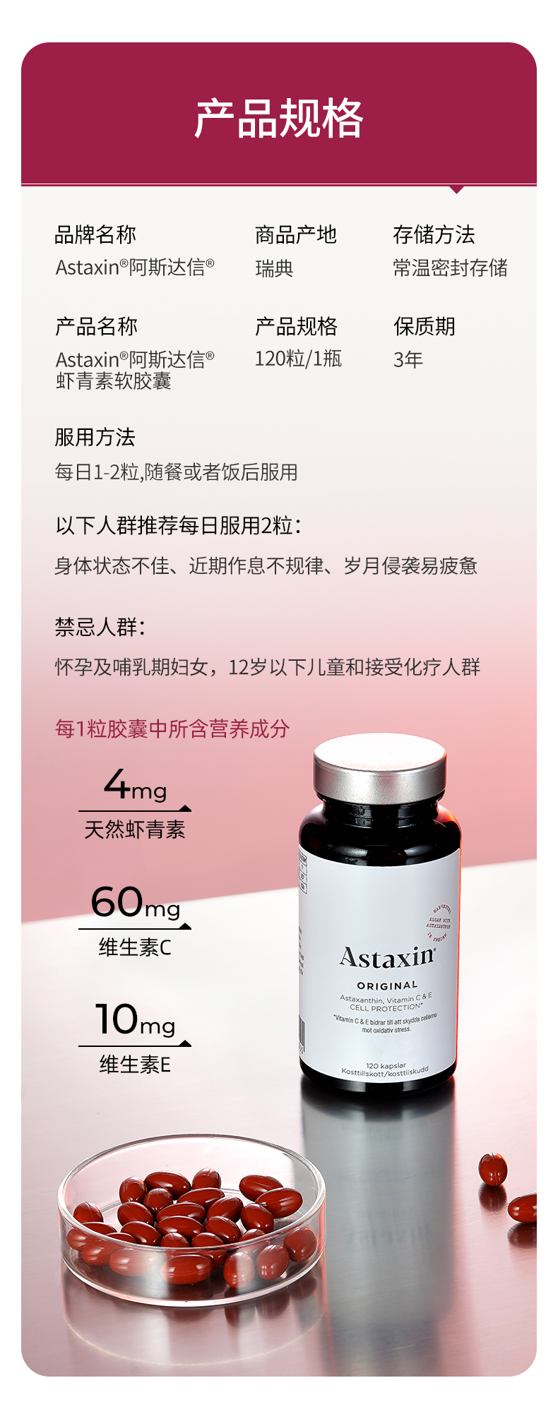 【虾青素顶流 清除自由基 六周减少色素沉淀】Astaxin瑞典进口天然口服虾青素精华胶囊&软糖 120粒/瓶 新期效