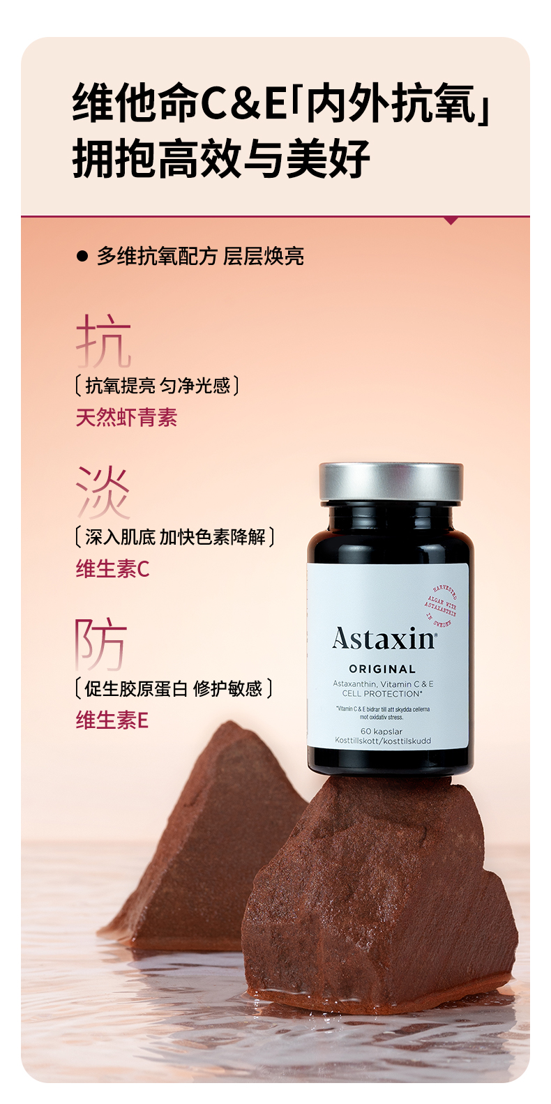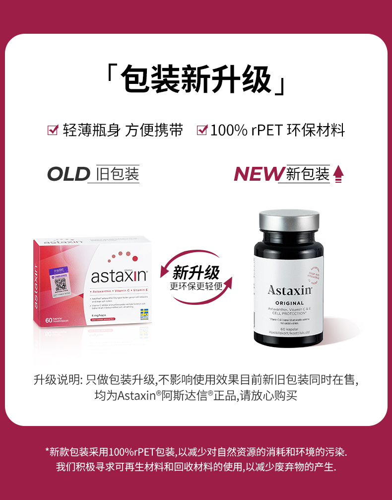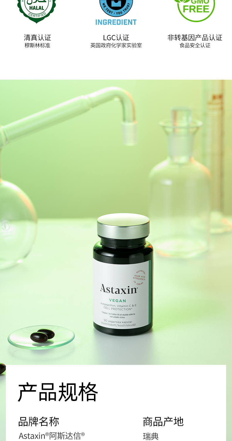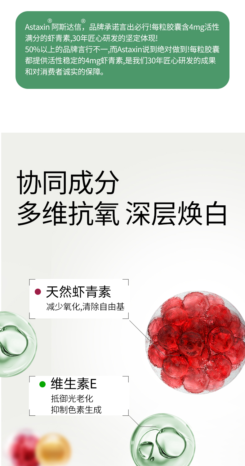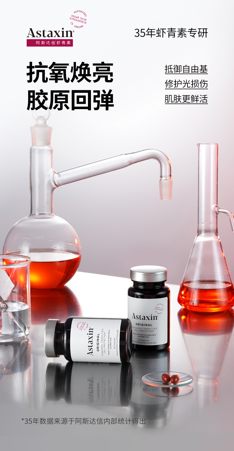 【虾青素顶流 清除自由基 六周减少色素沉淀】Astaxin瑞典进口天然口服虾青素精华胶囊&软糖 120粒/瓶 新期效