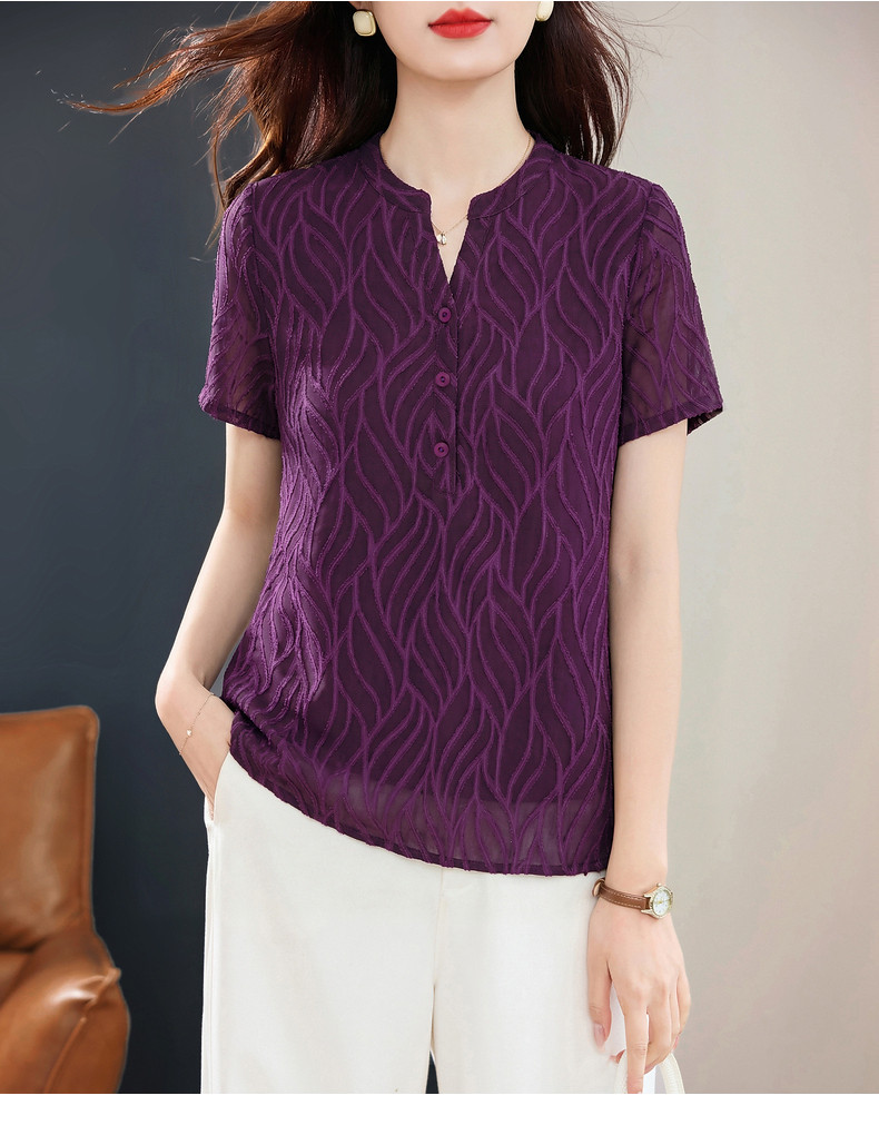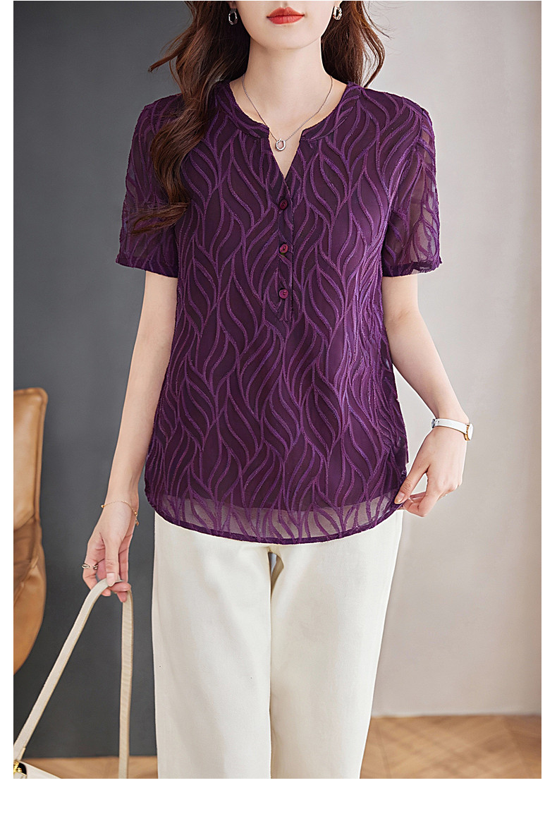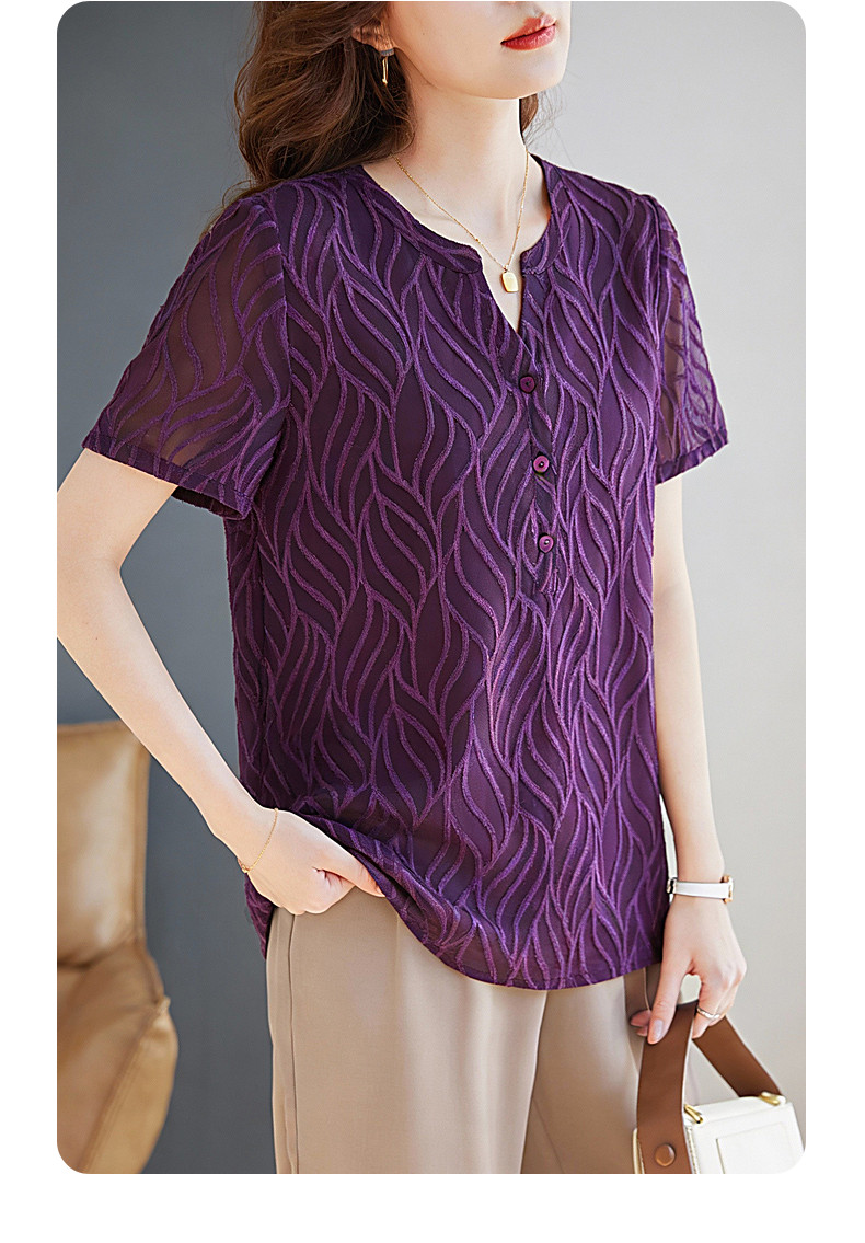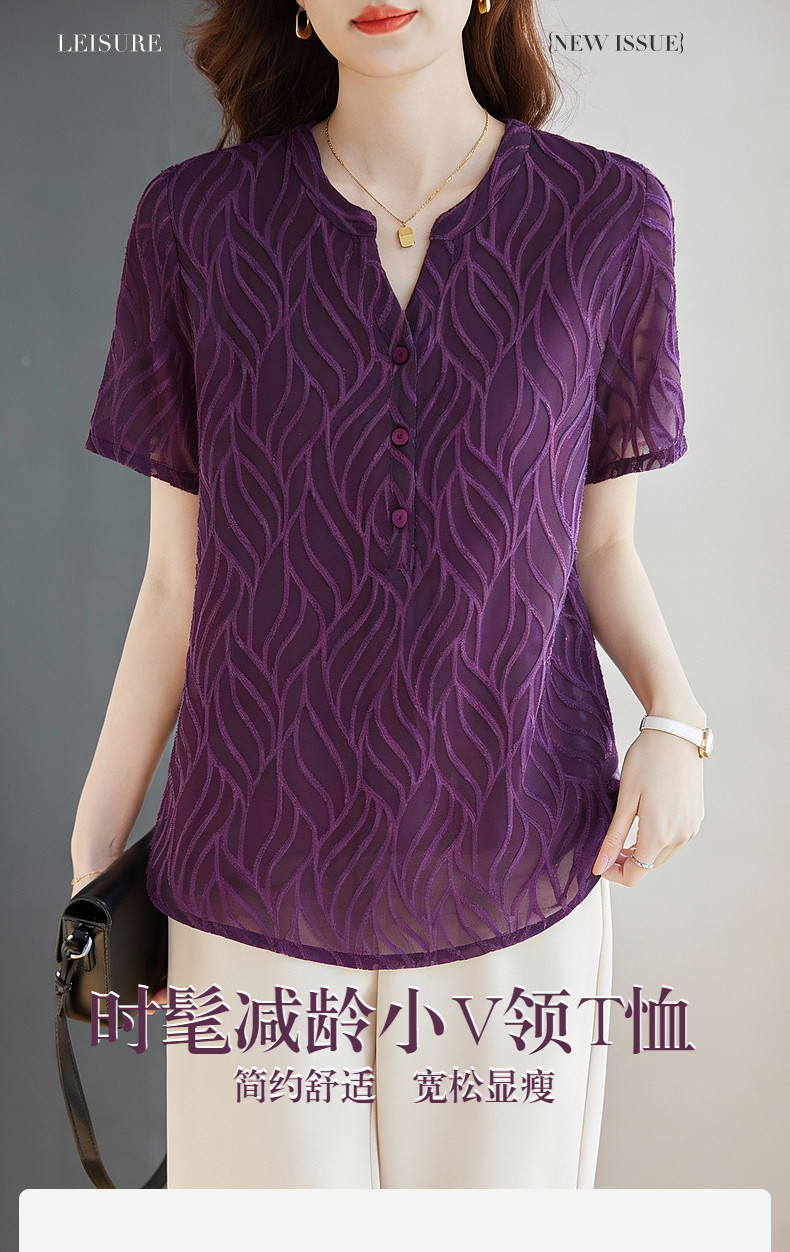 短袖雪纺体恤衫女2026春夏新款胖mm遮肉显瘦宽松洋气减龄大码上衣
