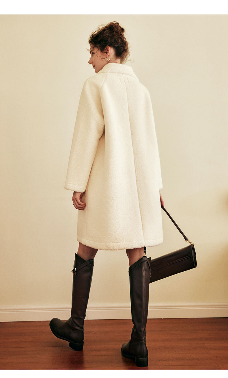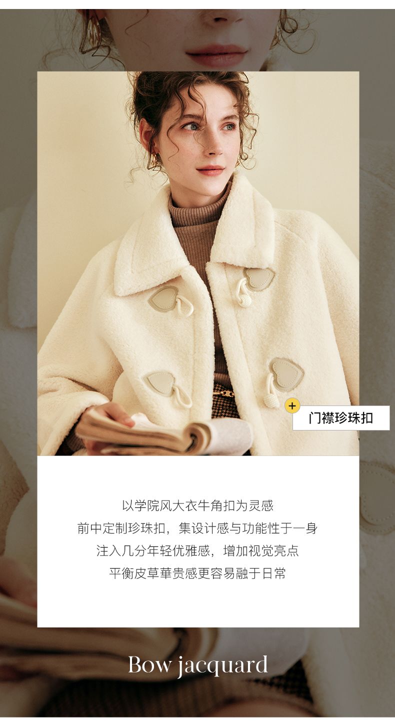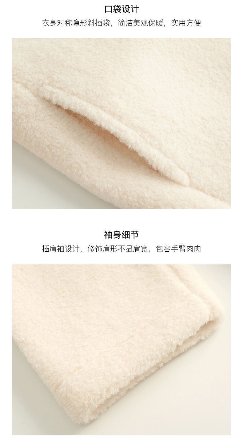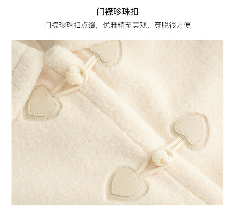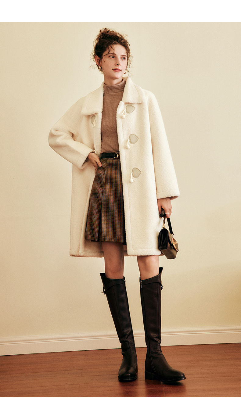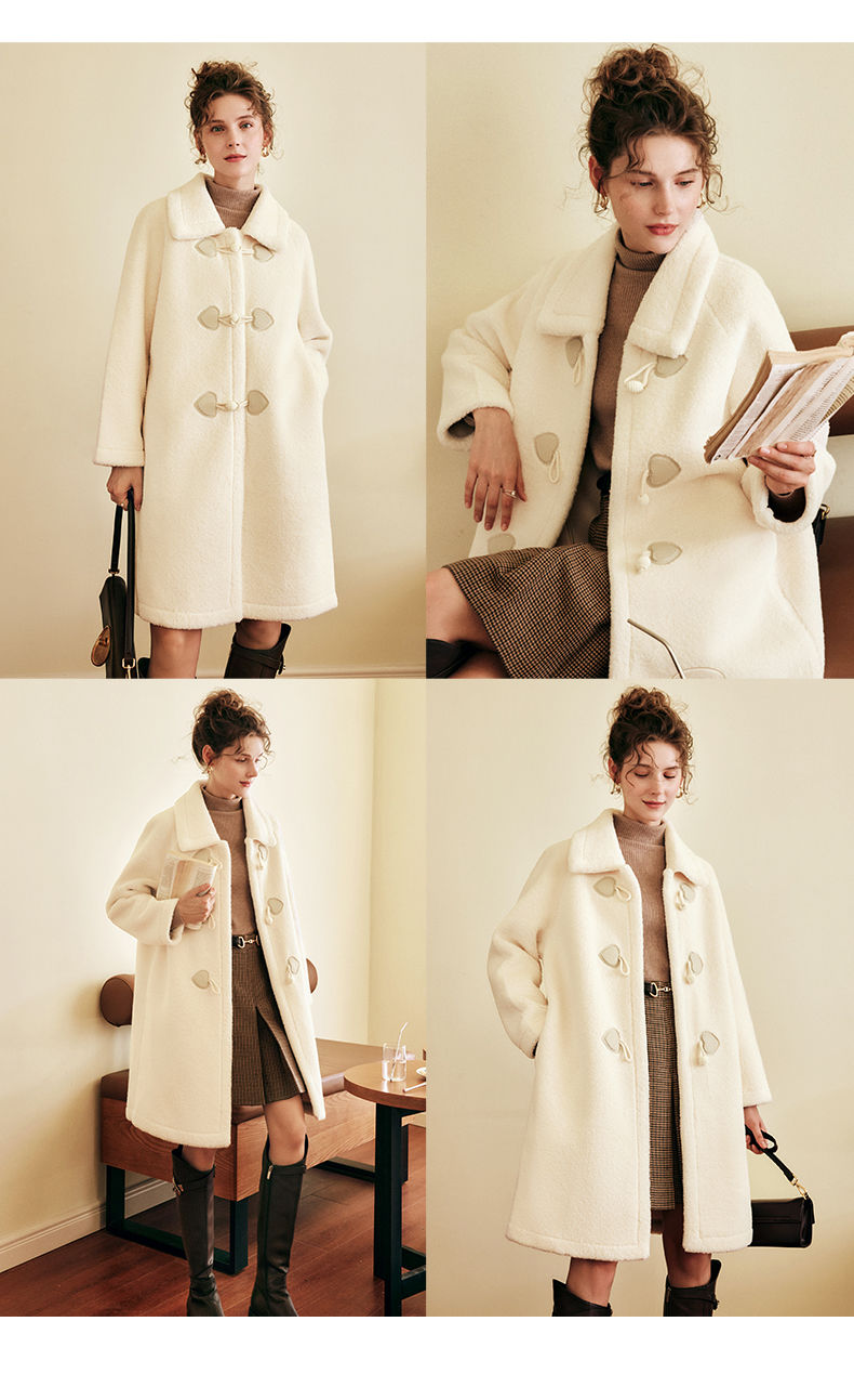OLrain欧芮儿法式中长款皮草外套女秋冬2023年新款牛角扣加厚大衣