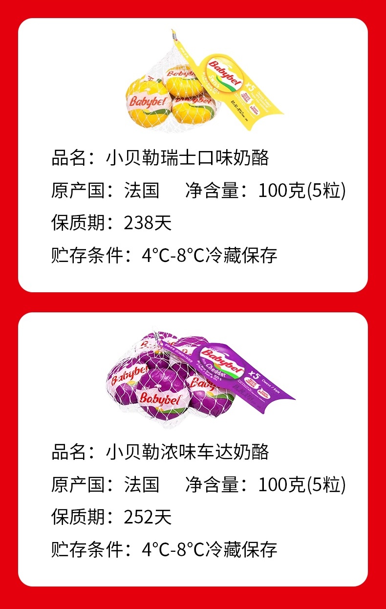 法国进口 小贝勒原味/瑞士口味/浓味车达奶酪100-110g(5粒)