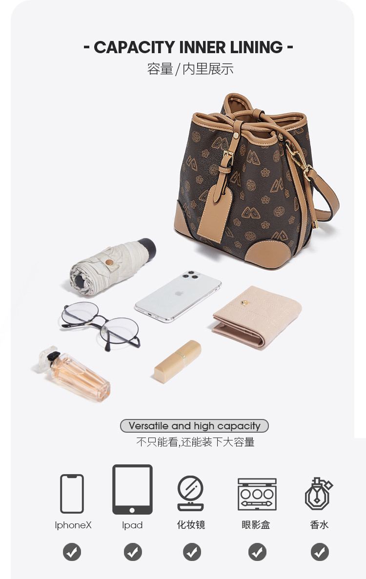 Safiya/索菲娅2022新款印花腋下水桶包单肩包包女斜挎包手提女包 SF9140024Y