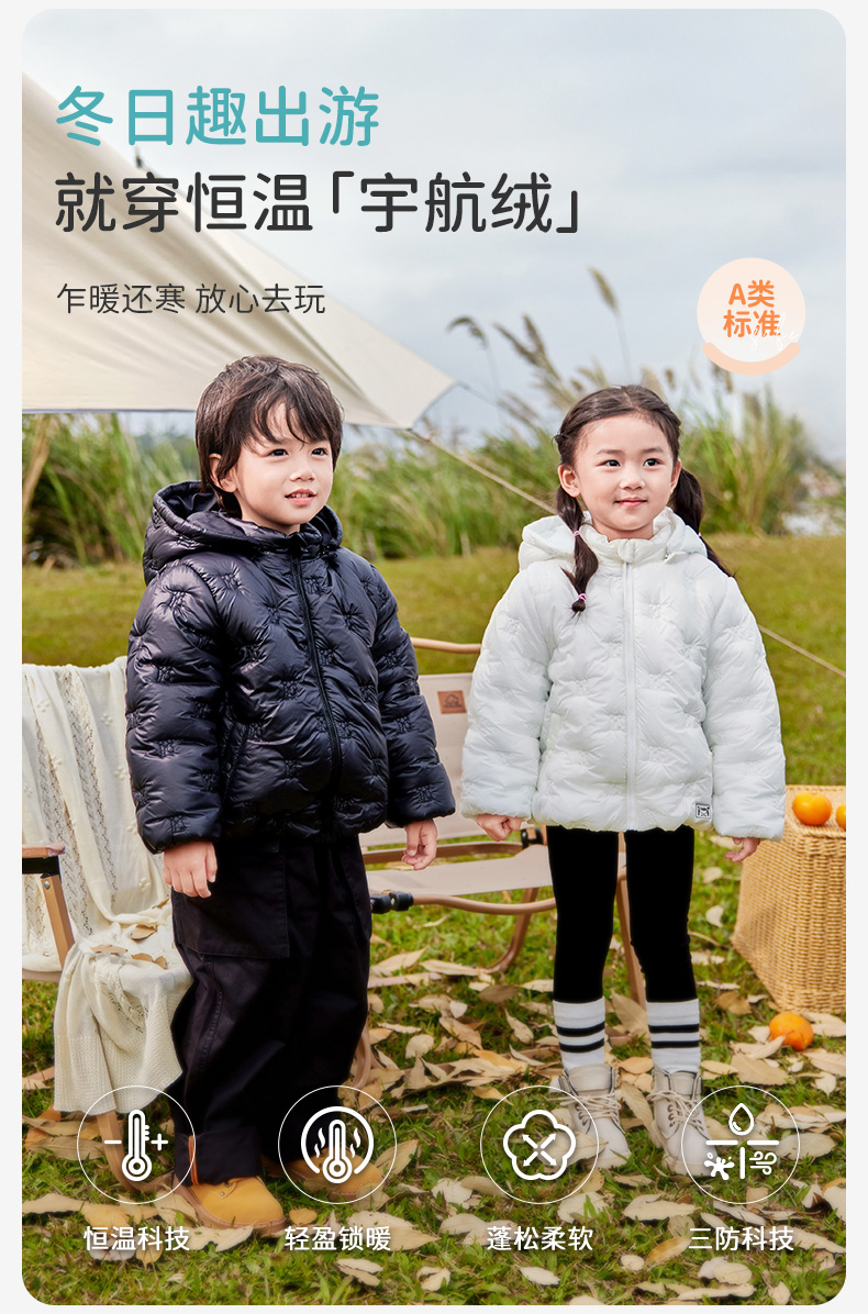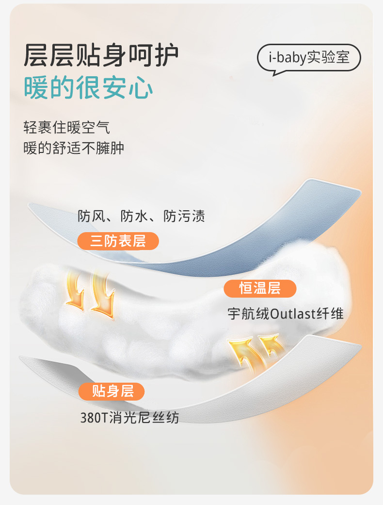 ibaby×outlast太空科技恒温宇航绒绸感连帽儿童户外小棉袄