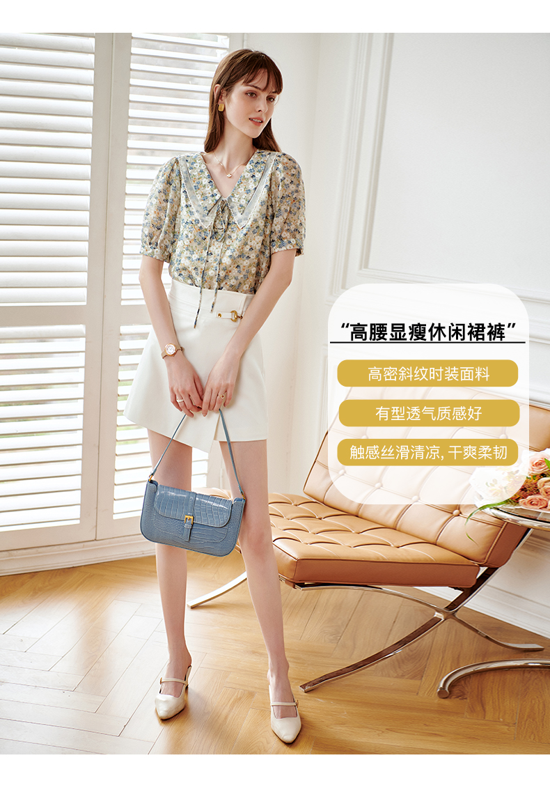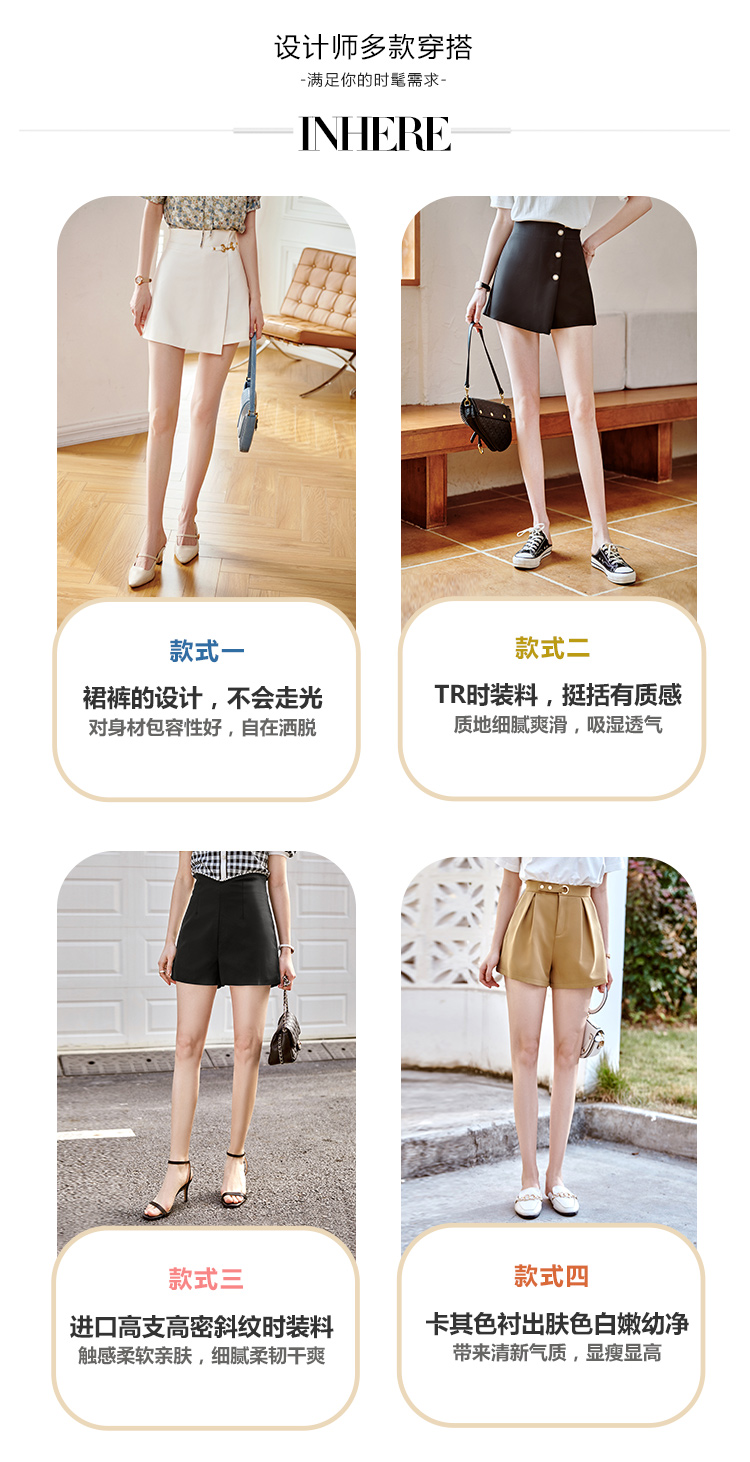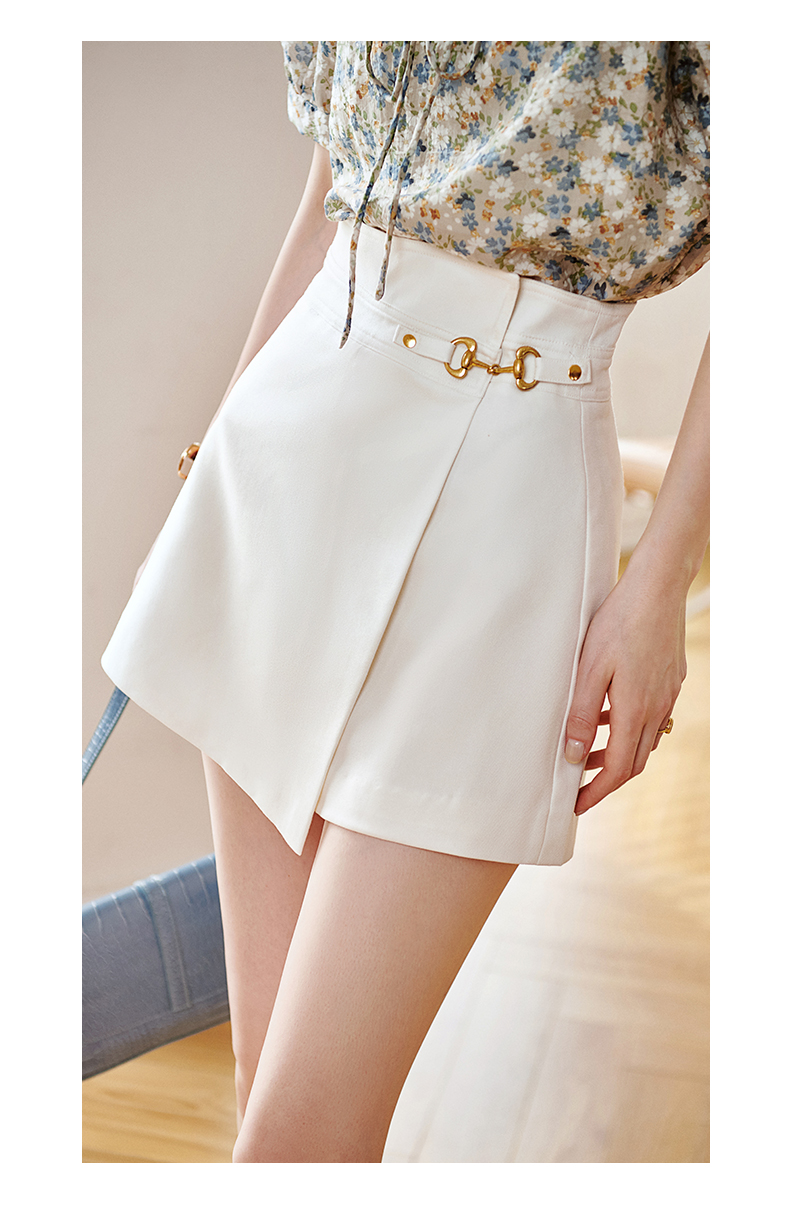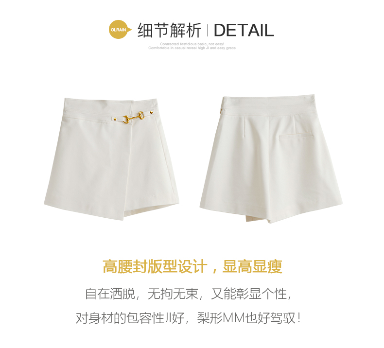 欧芮儿白色休闲裤女2021夏新款高腰显瘦气质时髦优雅小心机短裙裤