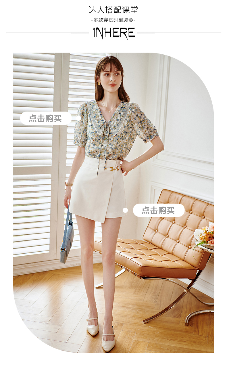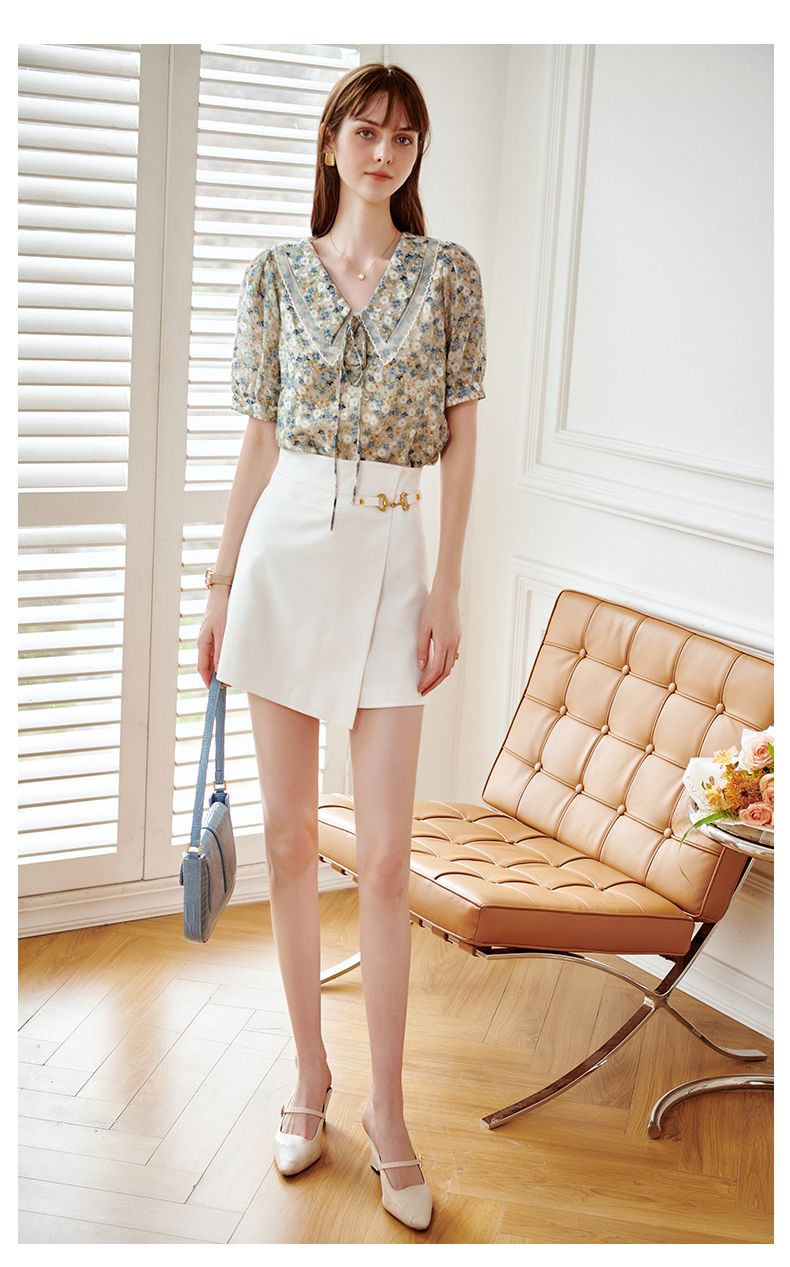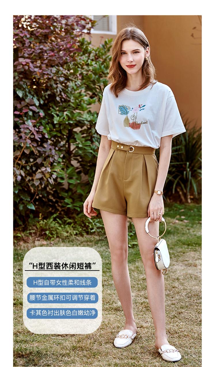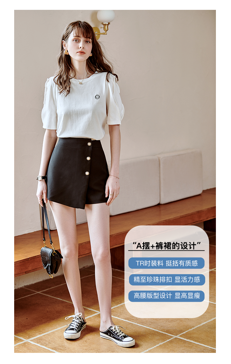 欧芮儿白色休闲裤女2021夏新款高腰显瘦气质时髦优雅小心机短裙裤