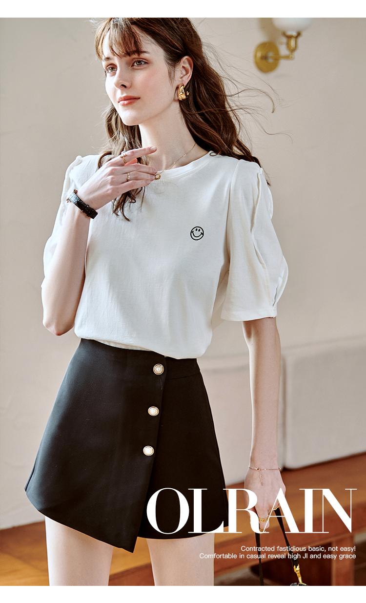 欧芮儿法式白色刺绣短袖T恤女夏季2024新款圆领设计感别致小上衣