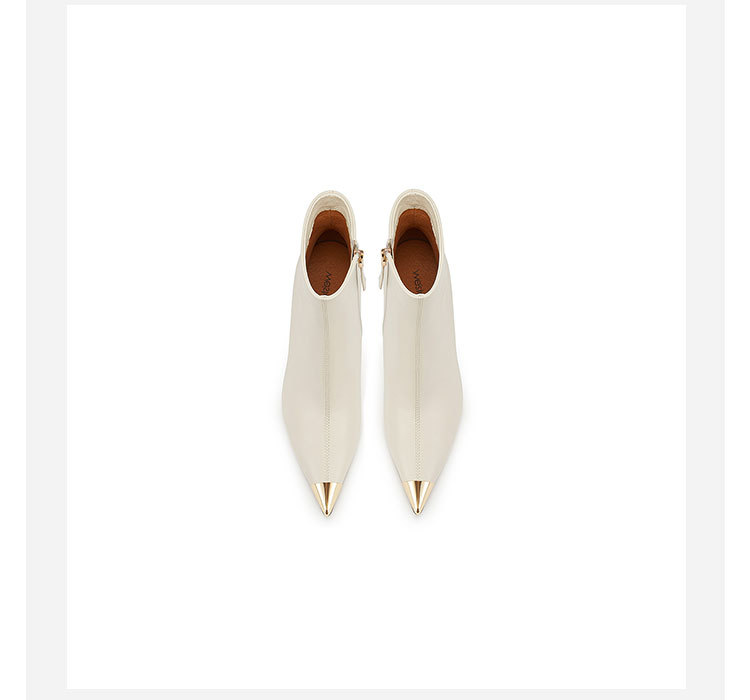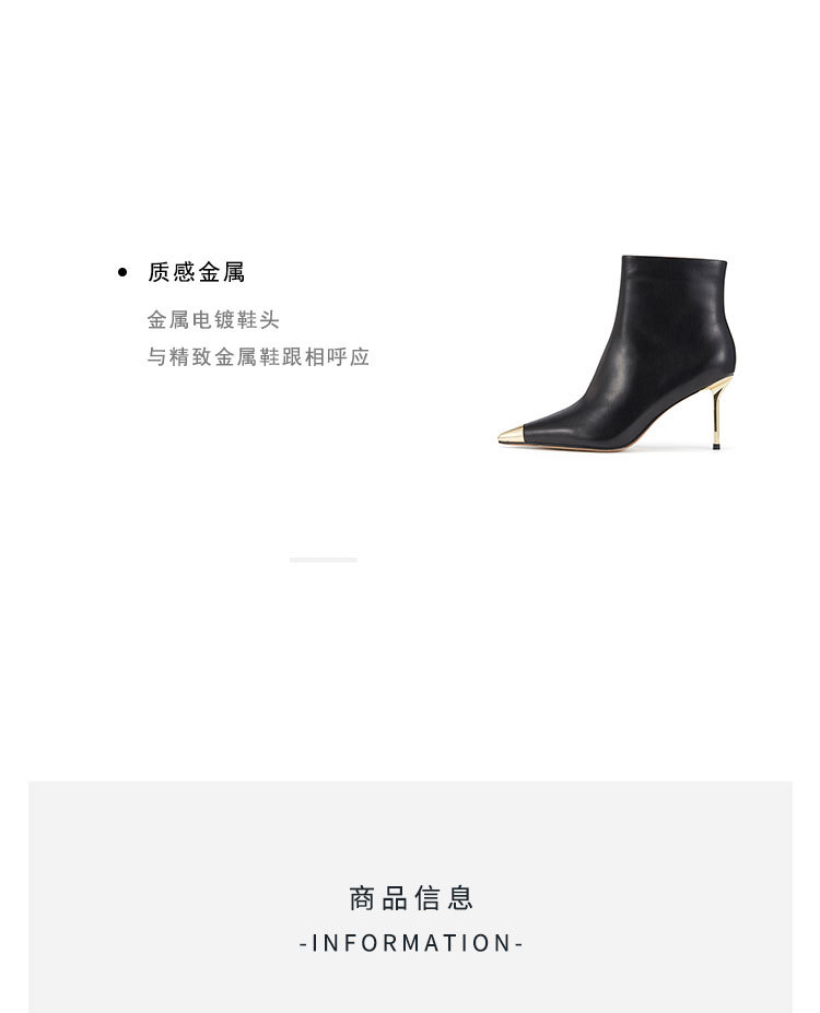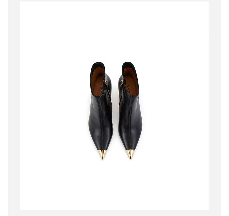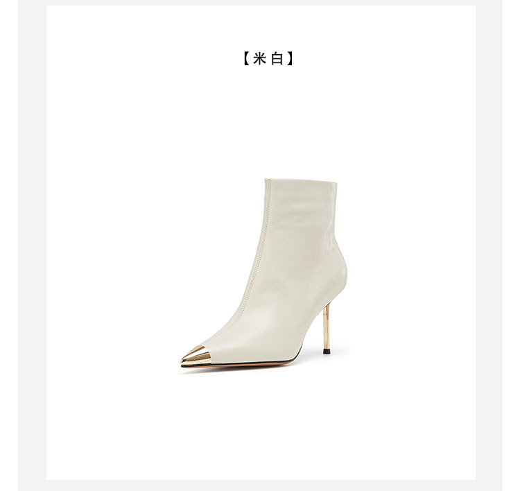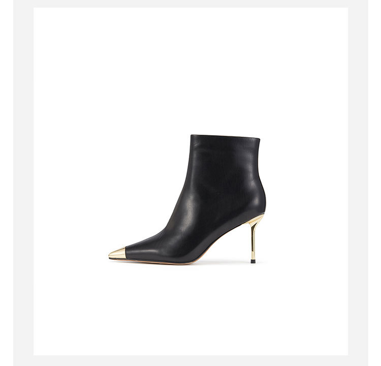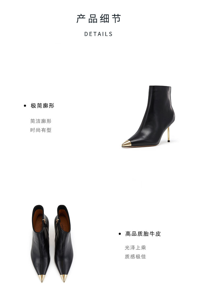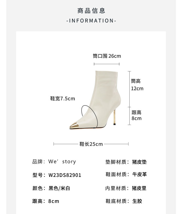 westory欧美尖头靴4寸胎牛皮靴细高跟尖头女单靴马丁靴显脚小及脚踝W23DS82901