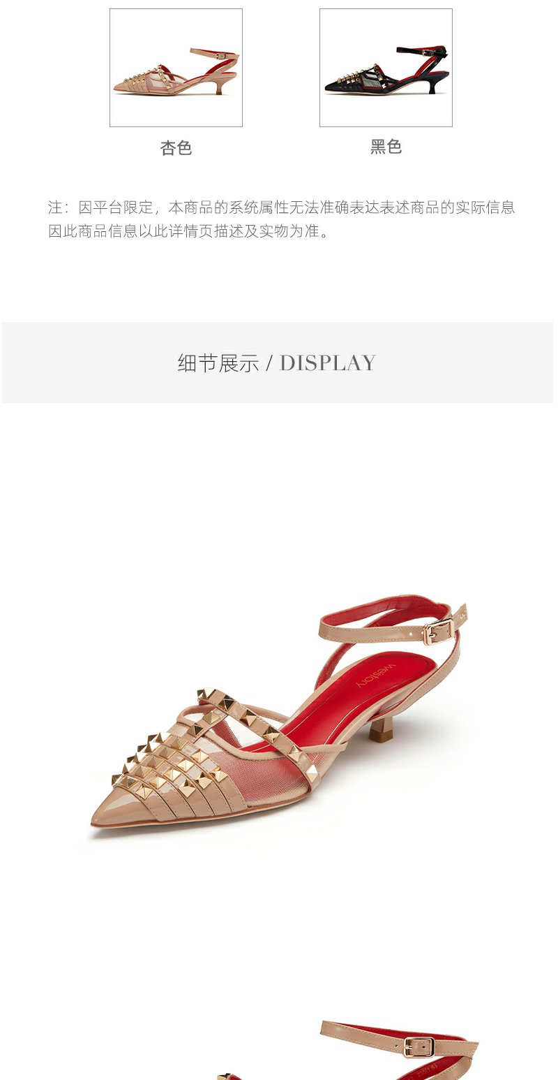 westory女鞋夏季新款尖头高跟牛皮后空鞋羊皮内里牛皮鞋垫72961