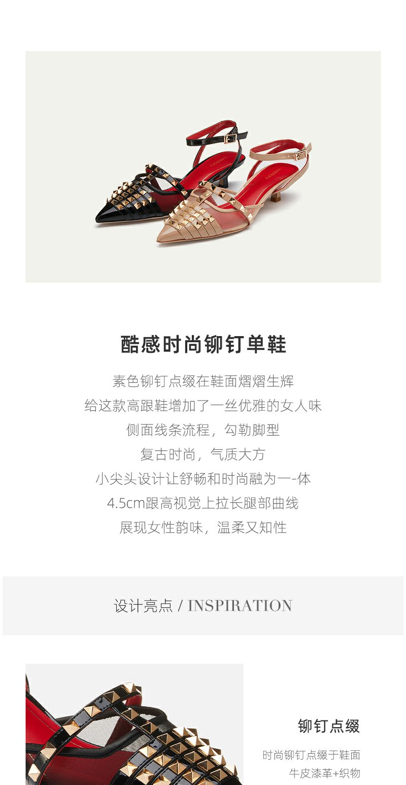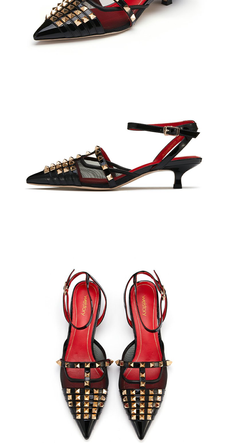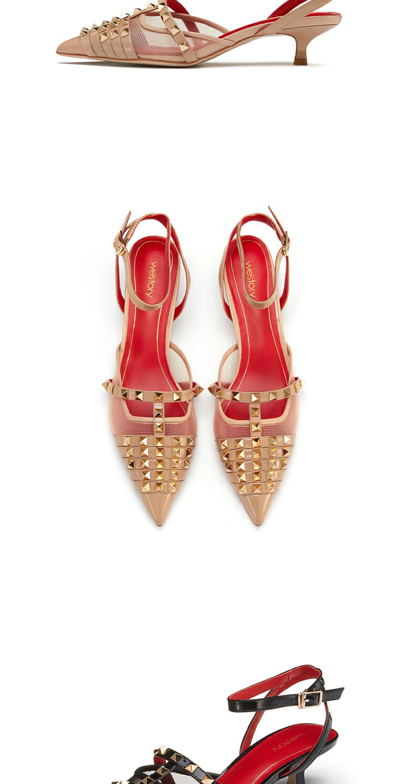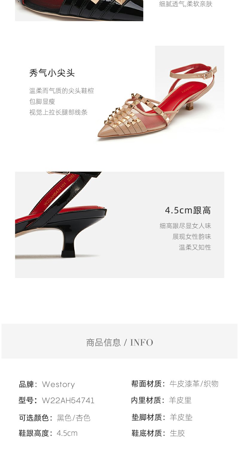 westory凉鞋款铆钉中细跟凉鞋尖头浅口百搭单鞋女W22AH54741