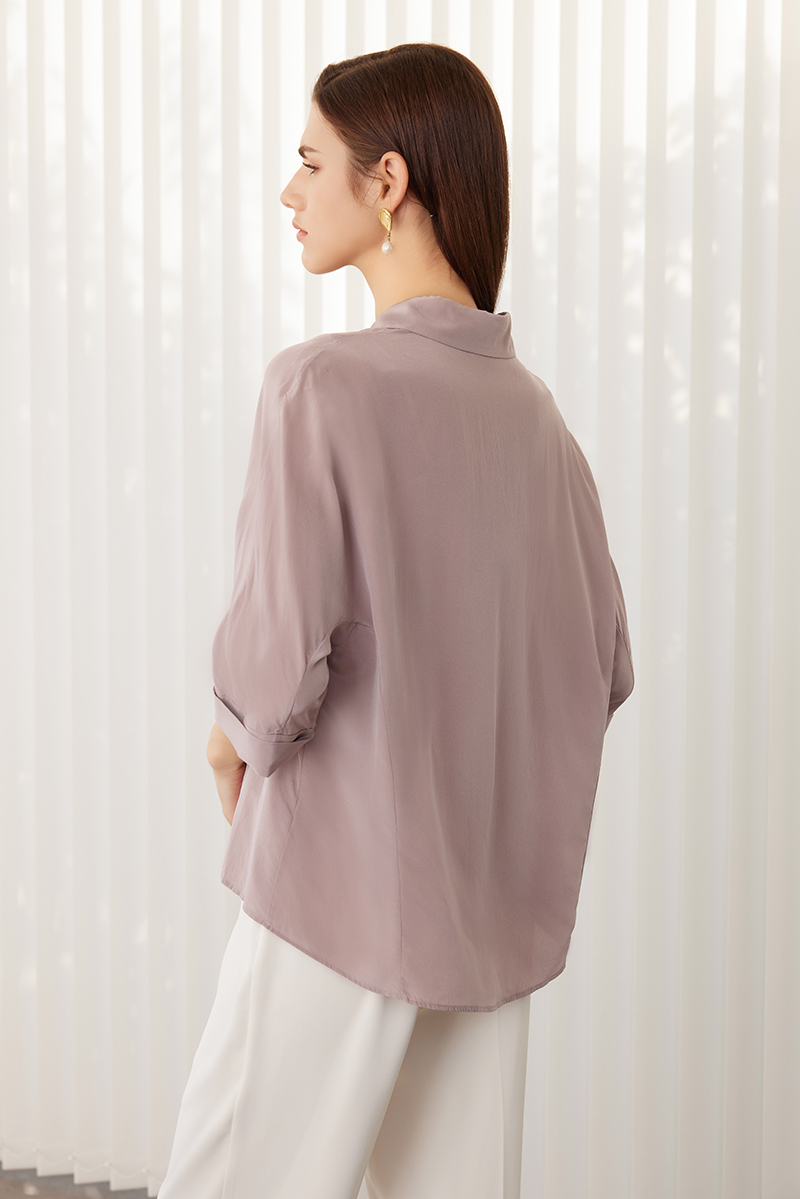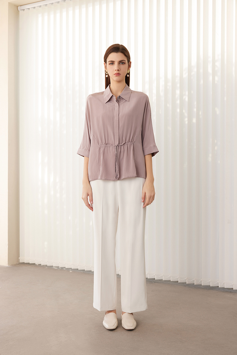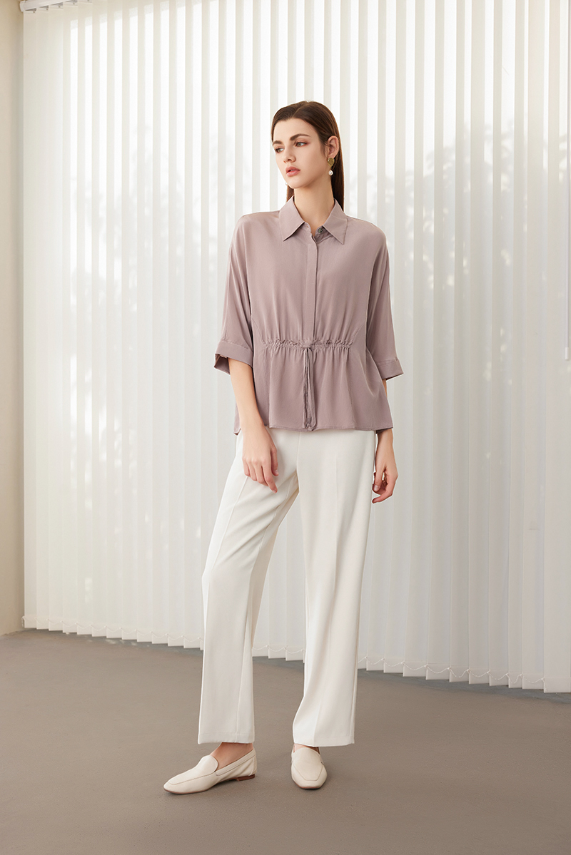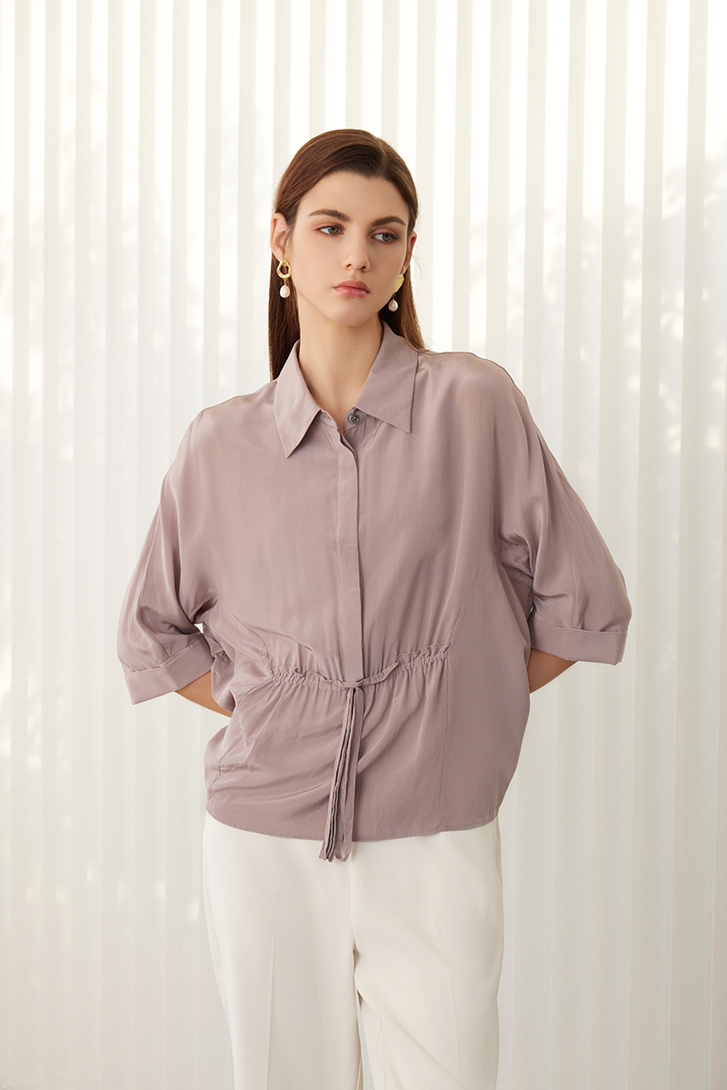【七分袖真丝衬衫】24年春夏新品女士100%桑蚕丝时尚系带上衣