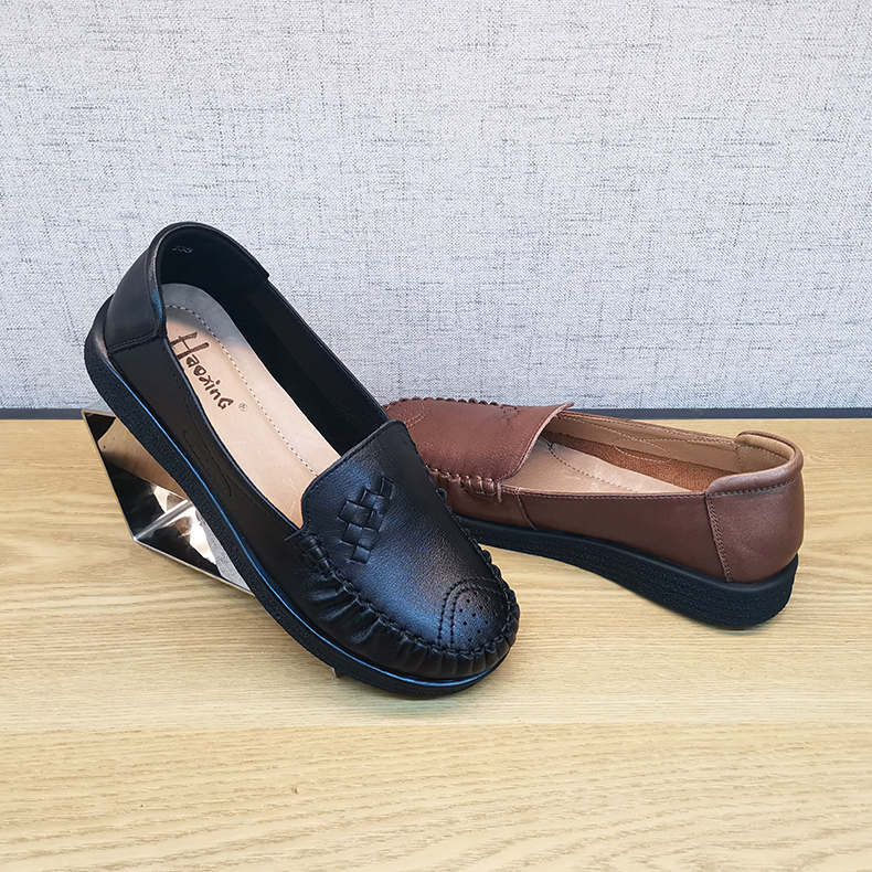 豪行2021年秋季新款213Q46515休闲真皮软底女鞋防滑透气女士单鞋