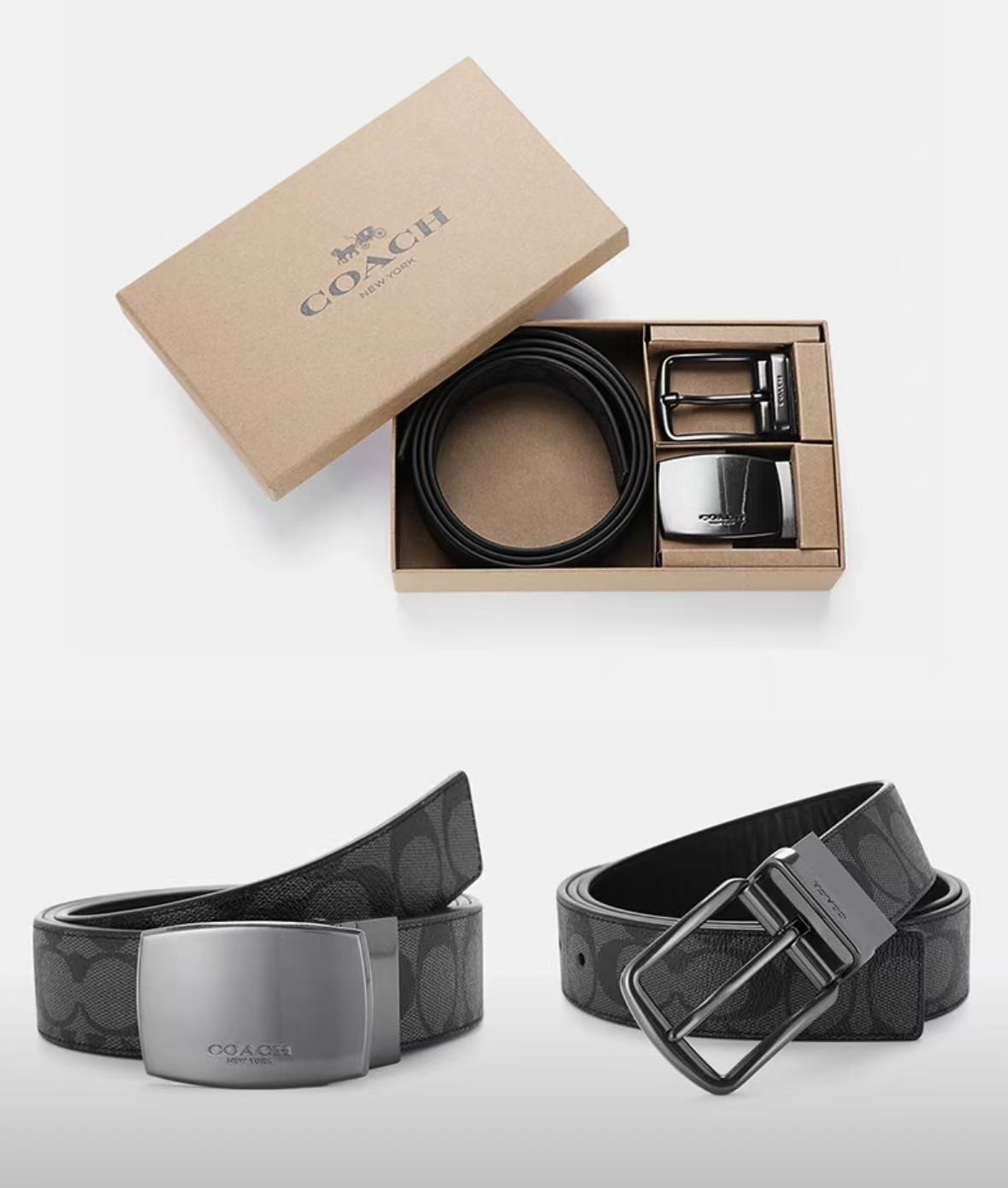 【2天发货】coach男士双头双面皮带礼盒,五金好皮质好,质量没得挑的腰带