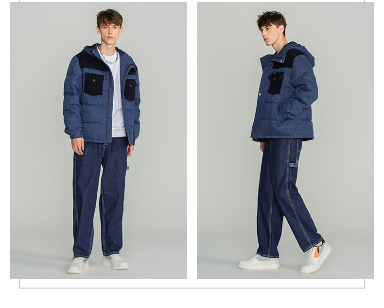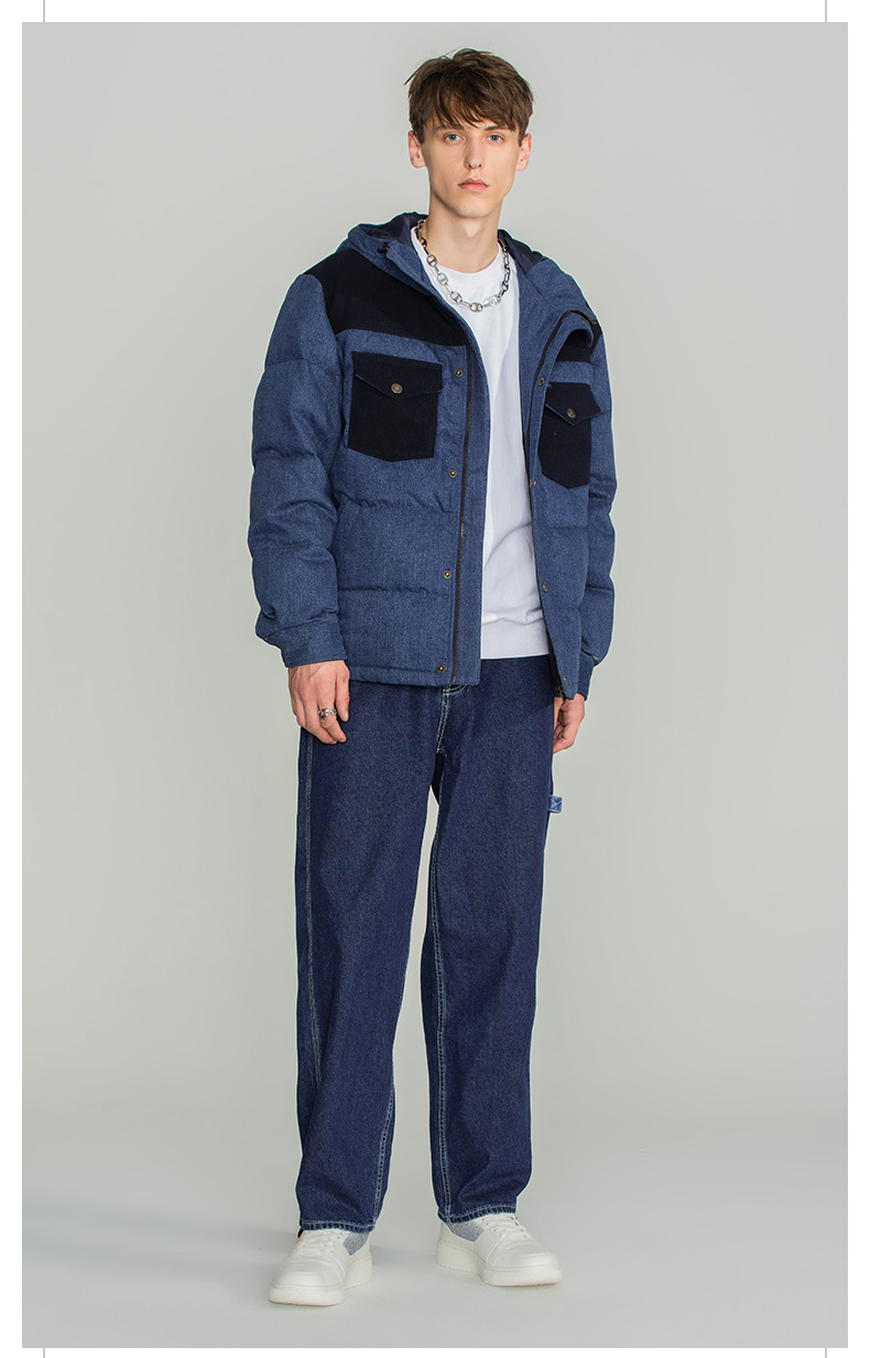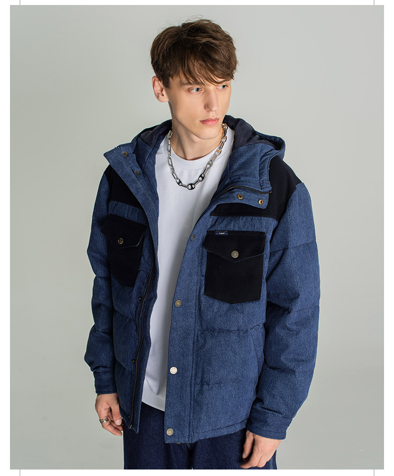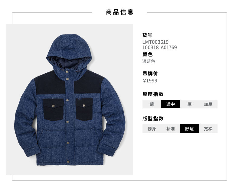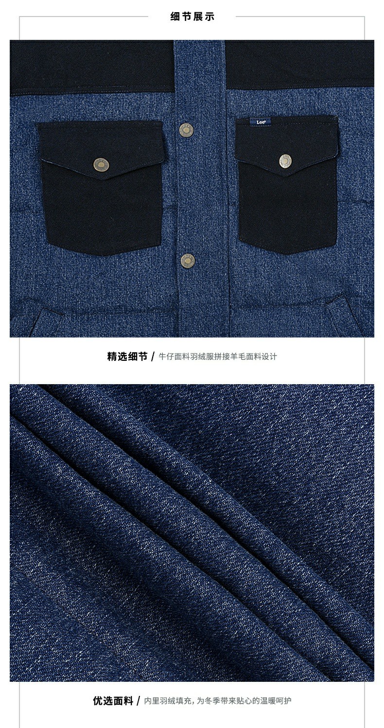 Lee商场同款101+22秋冬新品舒适拼接蓝男羽绒服LMT003619100-769