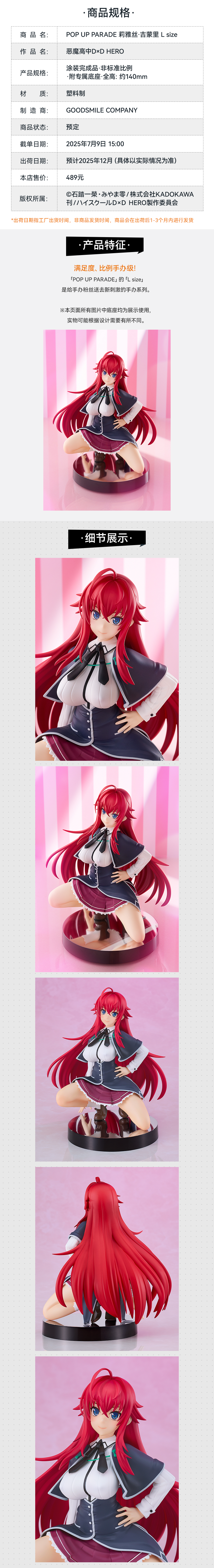 【GSC预售定金】POP UP PARADE 莉雅丝·吉蒙里 L size 恶魔高中D×D HERO