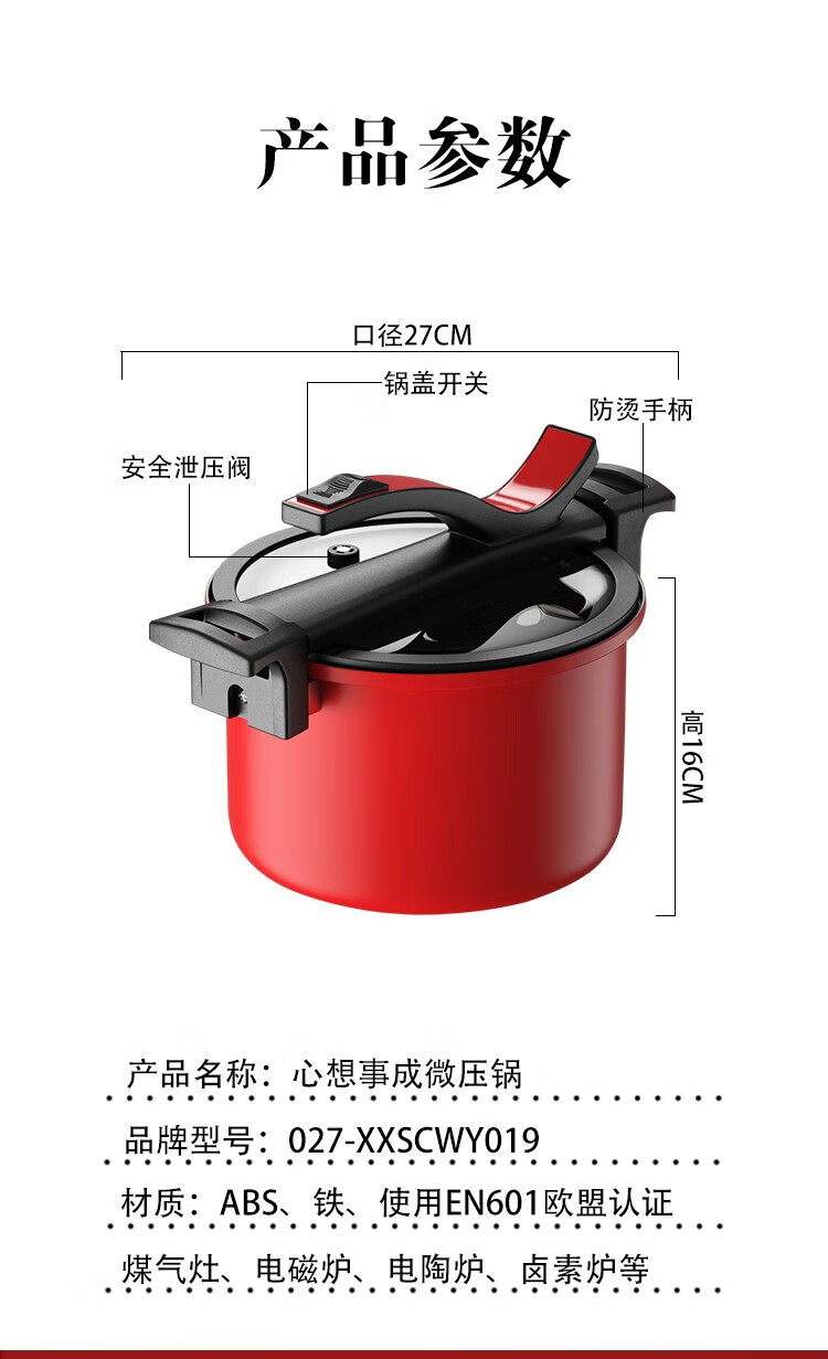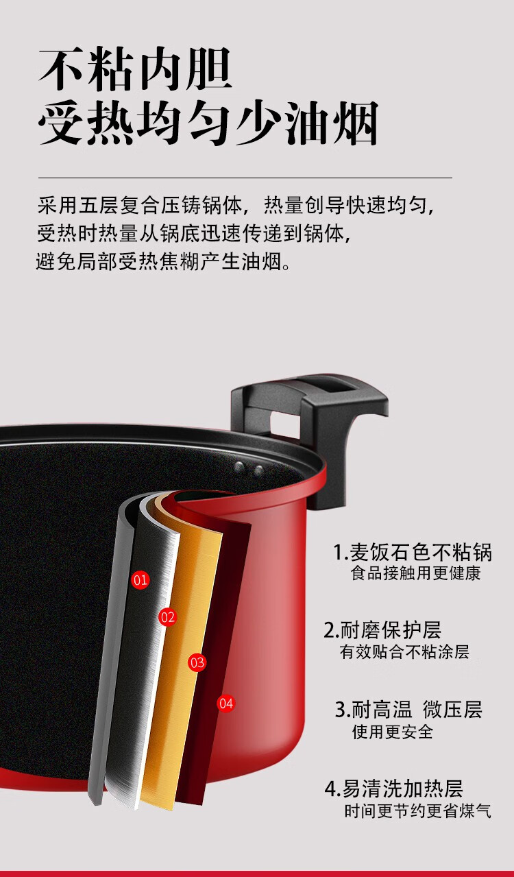 都市太太(DStt)都市太太心想事成微压锅焖煮焖烧一锅多用燃气灶电磁炉通用_红色