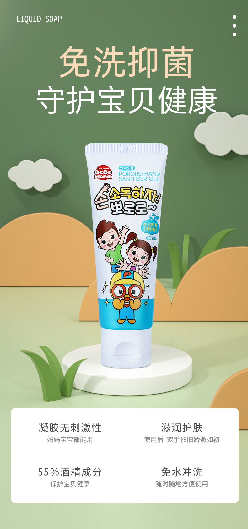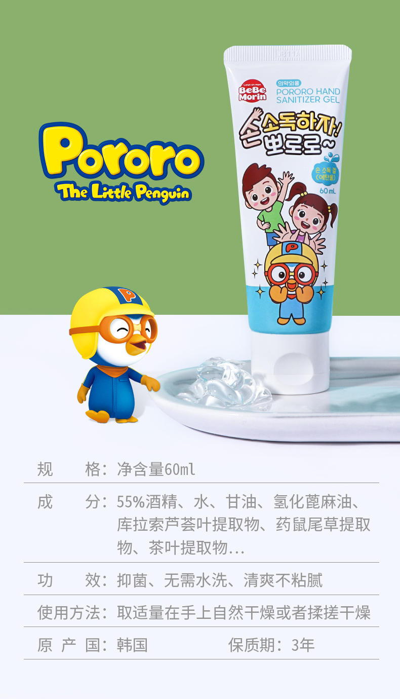 韩国原装啵乐乐Pororo 儿童免洗消毒凝胶60ml