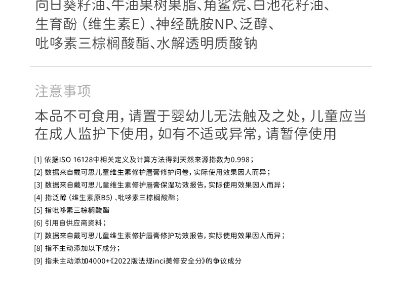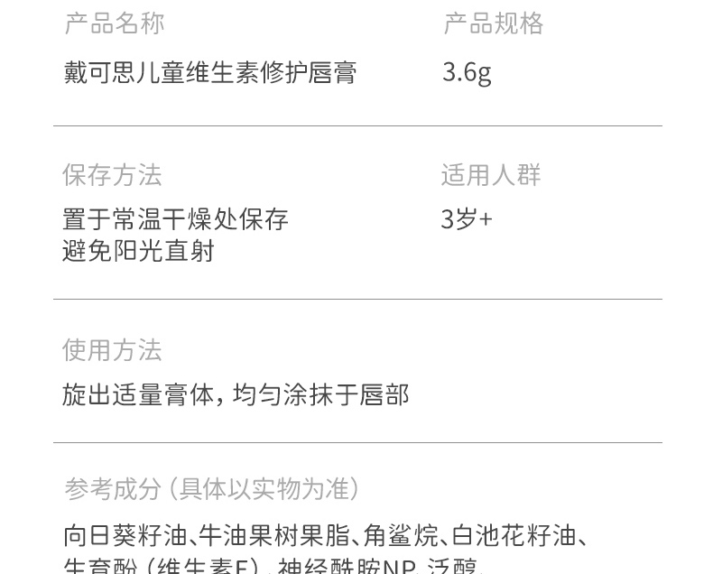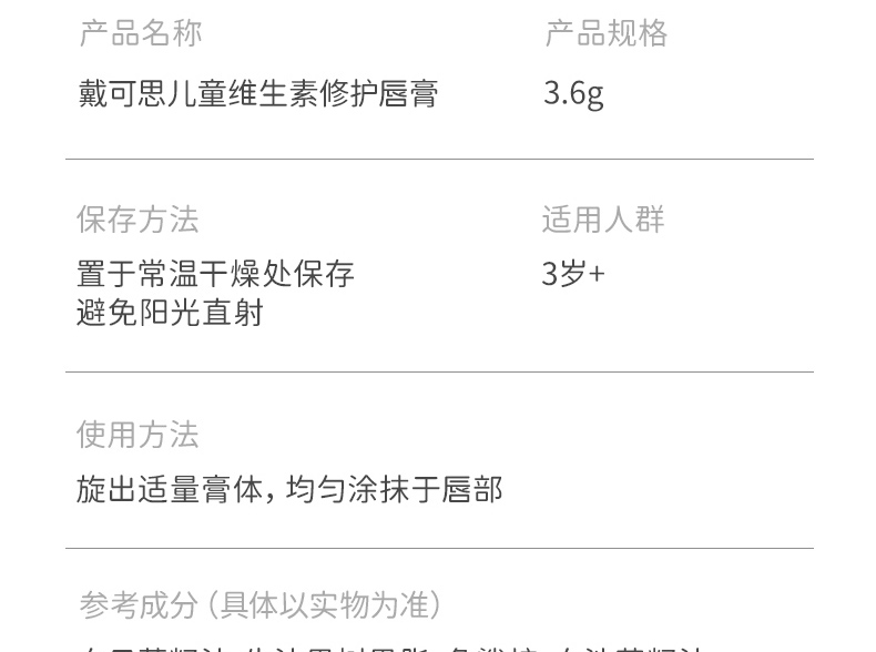 戴可思儿童维生素舒缓保湿修护润唇膏♥