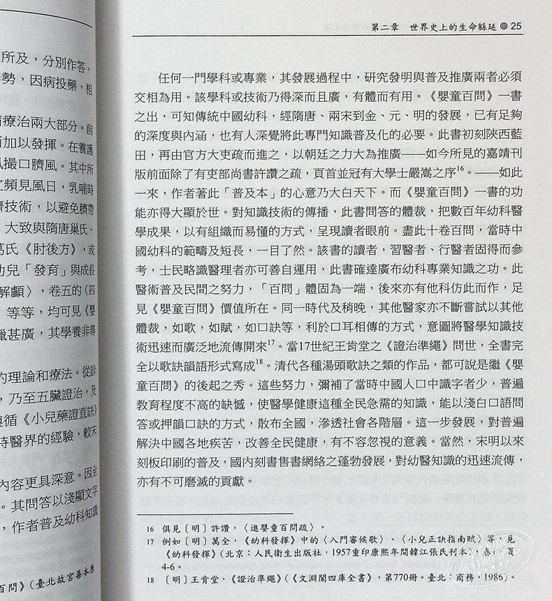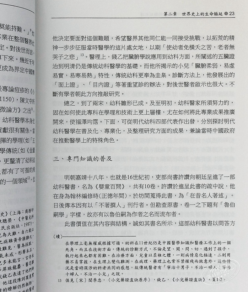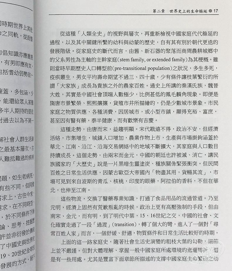 幼醫與幼蒙,鮮活而深入地指出了近世中國家族的緜延之道。全書除序言結語外共十一章,從世界史之角度,重新檢視歷來人群生命之絕續,以再省近世中國家庭經營之策略,無略其幼科技術面之扶持,或者幼蒙教養之努力,如今從二十一世紀全球生態與多文化開放寬容的新視野,當作如何之理解、反思。