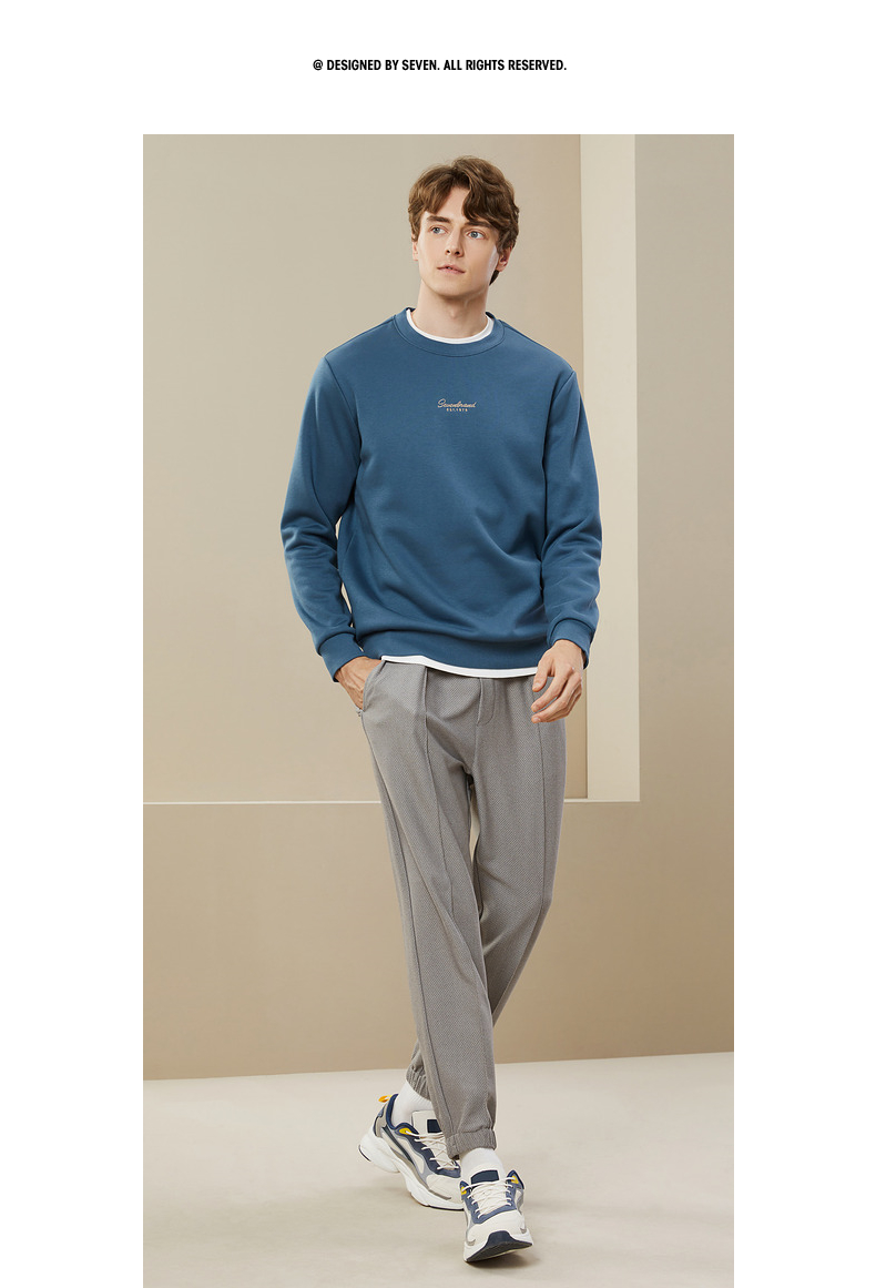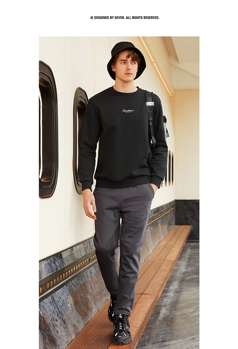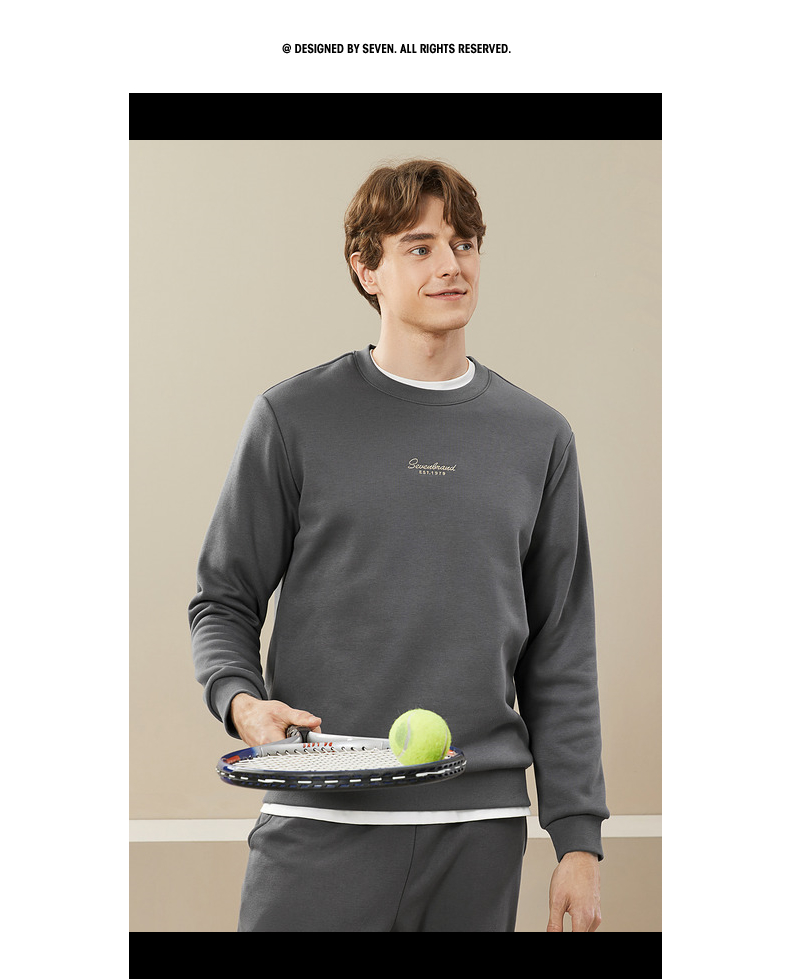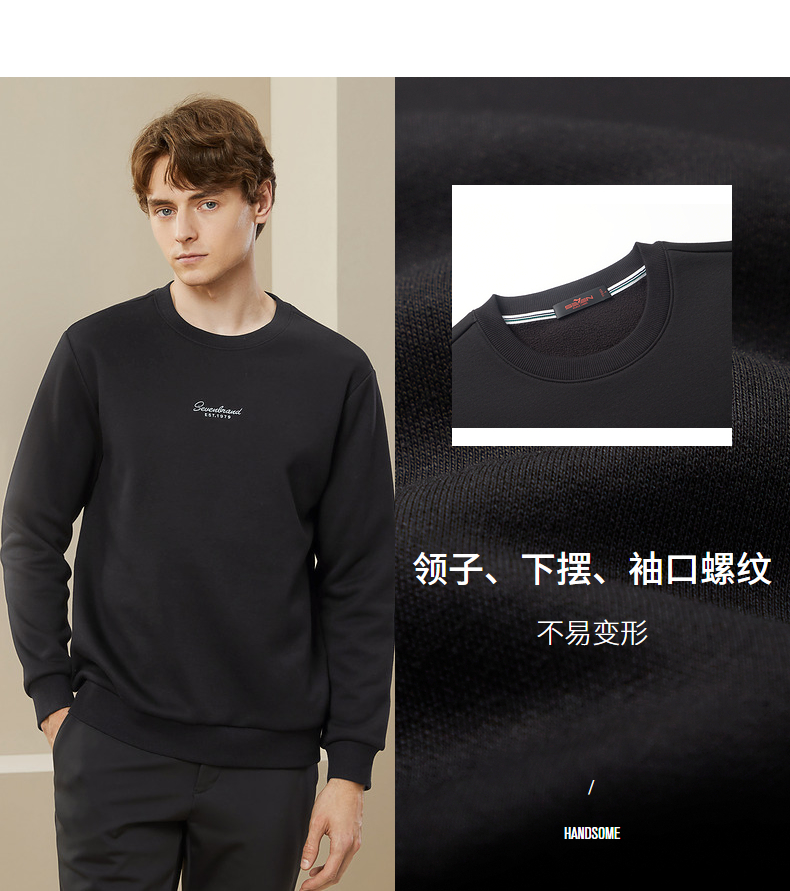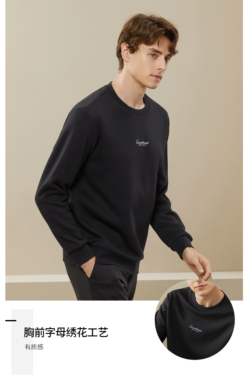 【加绒】柒牌男装圆领卫衣男秋冬厚款时尚休闲简约长袖T恤衫上衣 125W70560
