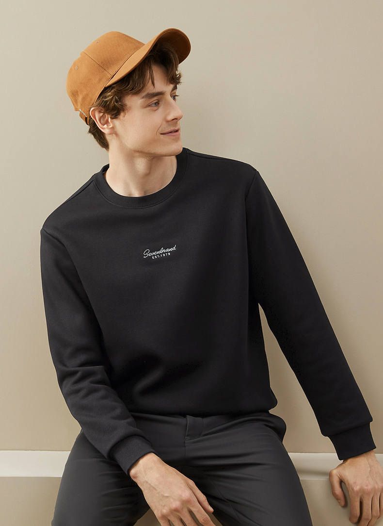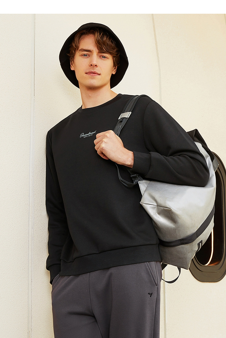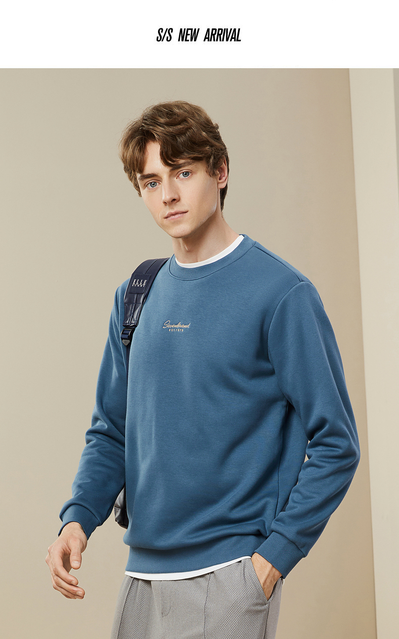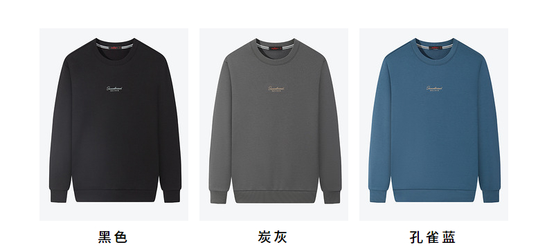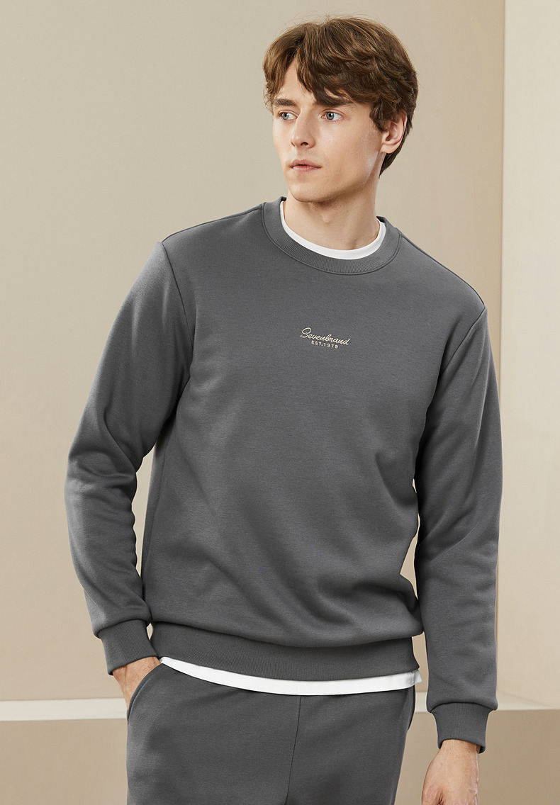 【加绒】柒牌男装圆领卫衣男秋冬厚款时尚休闲简约长袖T恤衫上衣 125W70560