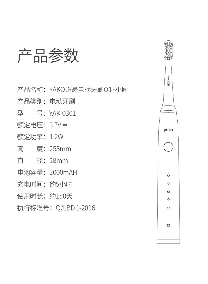 【一般贸易】YAKO 磁悬电动牙刷O1·小匠酷黑 酷黑