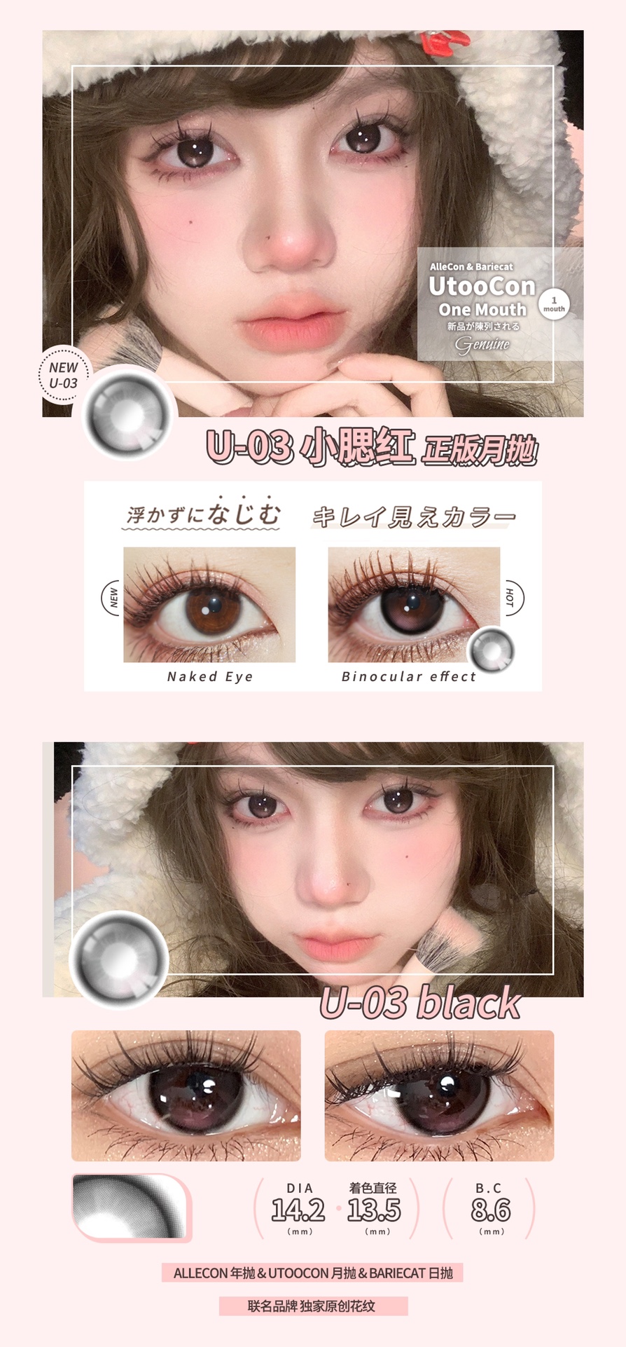 Utoocon月抛 小腮红 推荐 14.2mm 有同款日抛年抛 一盒不同度数写在备注里就好啦