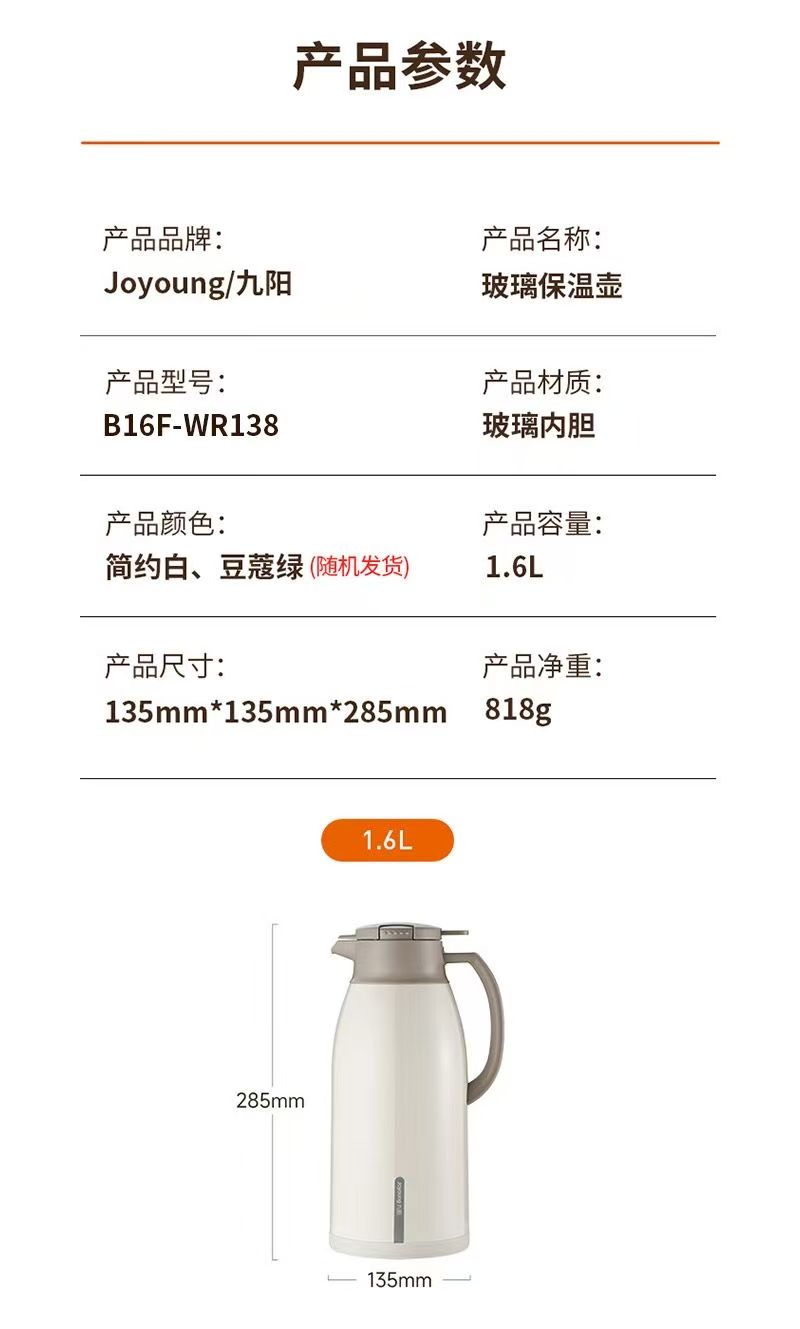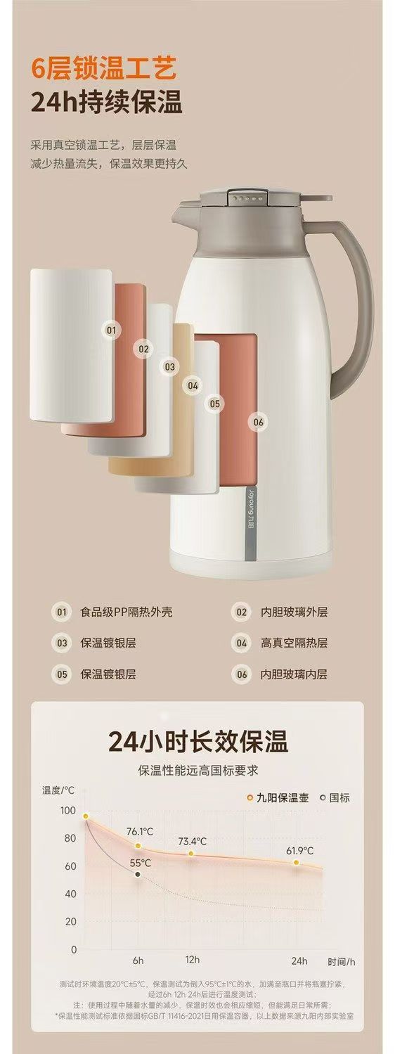 九阳正品保温家用大容量水壶宿舍学生暖水壶玻璃内胆热水瓶保温瓶