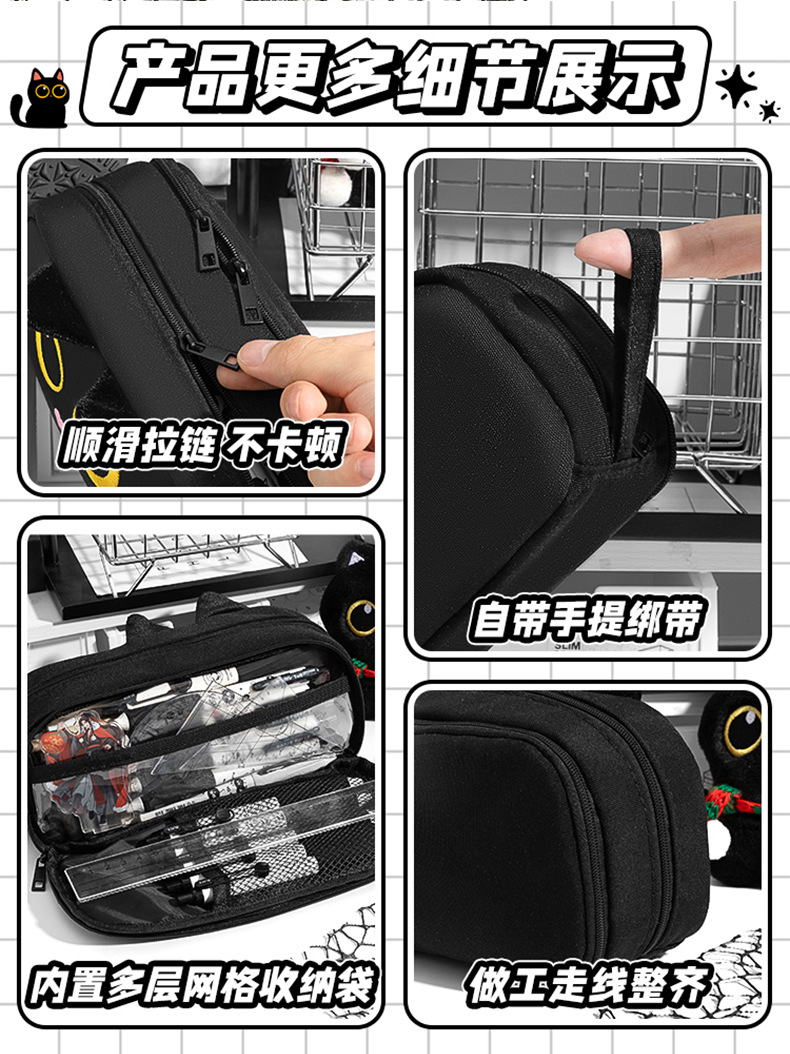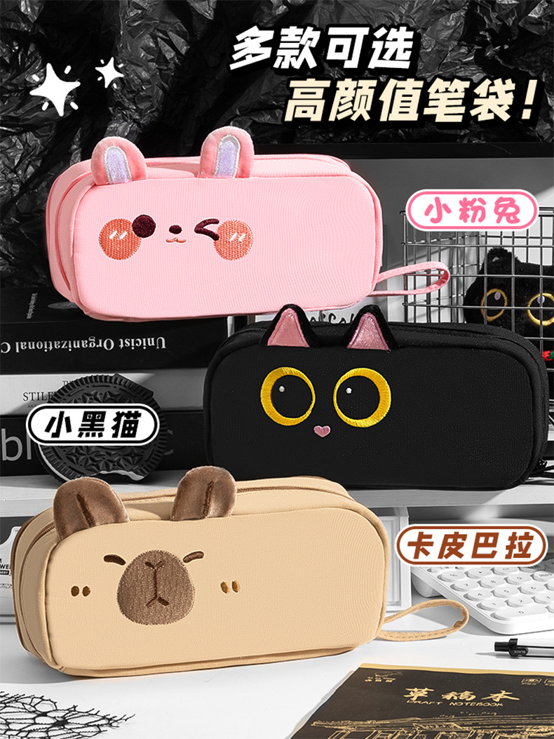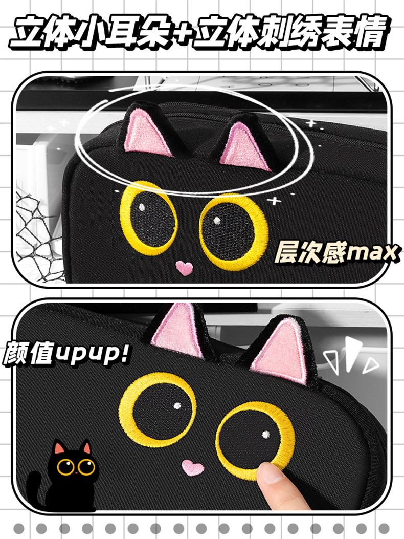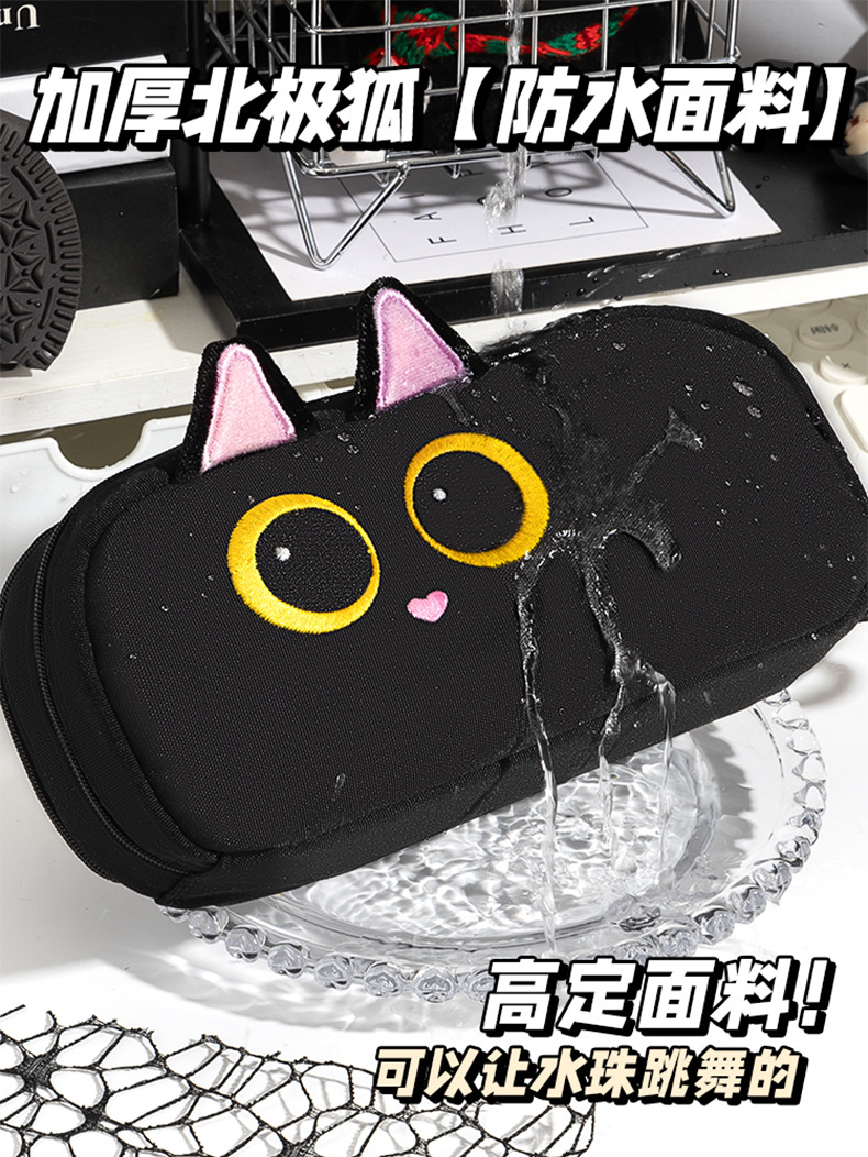 【防水面料❗️大容量】咔巴熊卡通黑猫立体大容量可爱动物笔袋学生开学收纳袋铅笔文具盒。ya